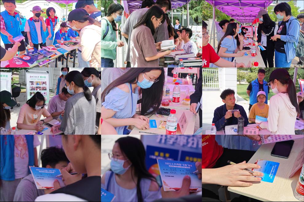 开“市”当天,同学们的脚步被吸引到活动现场,有序排队领取“交谊”卡,并在卡片上写上个人信息与目标院校,工整的落笔诠释出同学们们对考研深造的坚定,长长的队伍展现出同学们们对考研“交谊”集市的关注。活动现场按照学院设置考研“交谊摊位”,同学们纷纷带着考研“交谊”卡前往对应学院展位与学长学姐互动交流,询问院校选择、复习计划、备考心态、考试技巧等问题,看着写满学长学姐暖心考研祝福的“交谊卡”以及优秀考研学子与考研数据展示海报,同学们更加坚定考研的决心和信心。与此同时,beat365研究生院也专门设置“选择母校,一‘研’为定”咨询处,并安排专职老师负责宣传答疑,为同学们分析近年来的考研数据,帮助大家明晰考研形势,科学理性确定考研目标。在考研书籍领取处,1500余本数学、英语、政治考研复习资料免费提供给为考研梦想奋斗的同学们,助力考研学子顺利“上岸”。参加活动的同学们纷纷表示活动现场“考研赢在起跑线——目标院校的选择,考研输在冲刺线——最后一科的放弃”的横幅标语又一次激励大家坚定前行,非常感谢学校的暖心活动、免费的爱心书籍、师长的耐心交流。