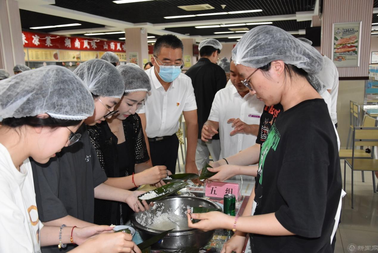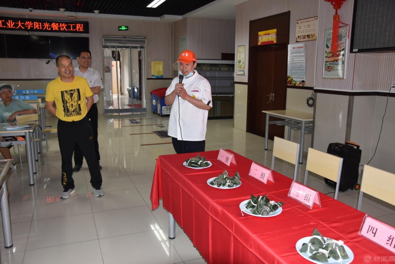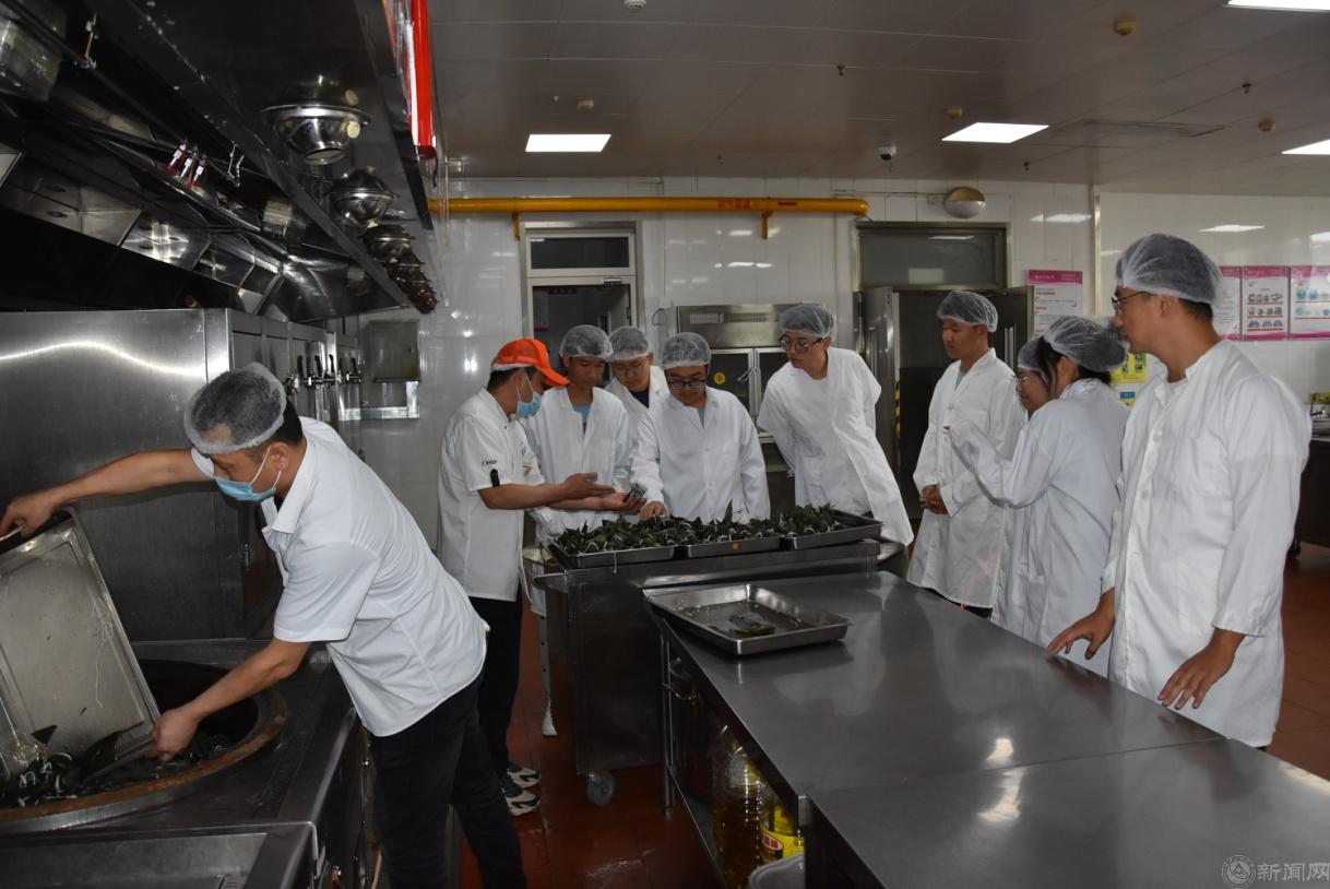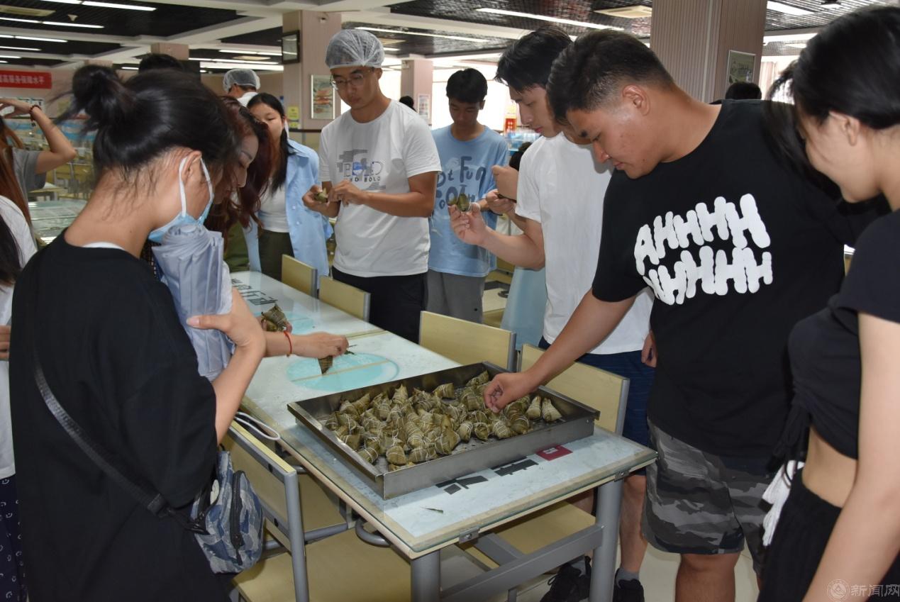 这堂别开生面的劳动教育课由知识讲解、方法演示、动手实操、质量点评、后厨观摩、成果品鉴等几个环节组成。饮食服务中心的工作人员向同学们讲解了端午节吃粽子的历史起源和节日风俗,说明了各地因饮食习惯不同造成口味上咸粽和甜粽的区别,介绍了不同地域使用的不同馅料,详细讲解并示范了包粽子的具体步骤。