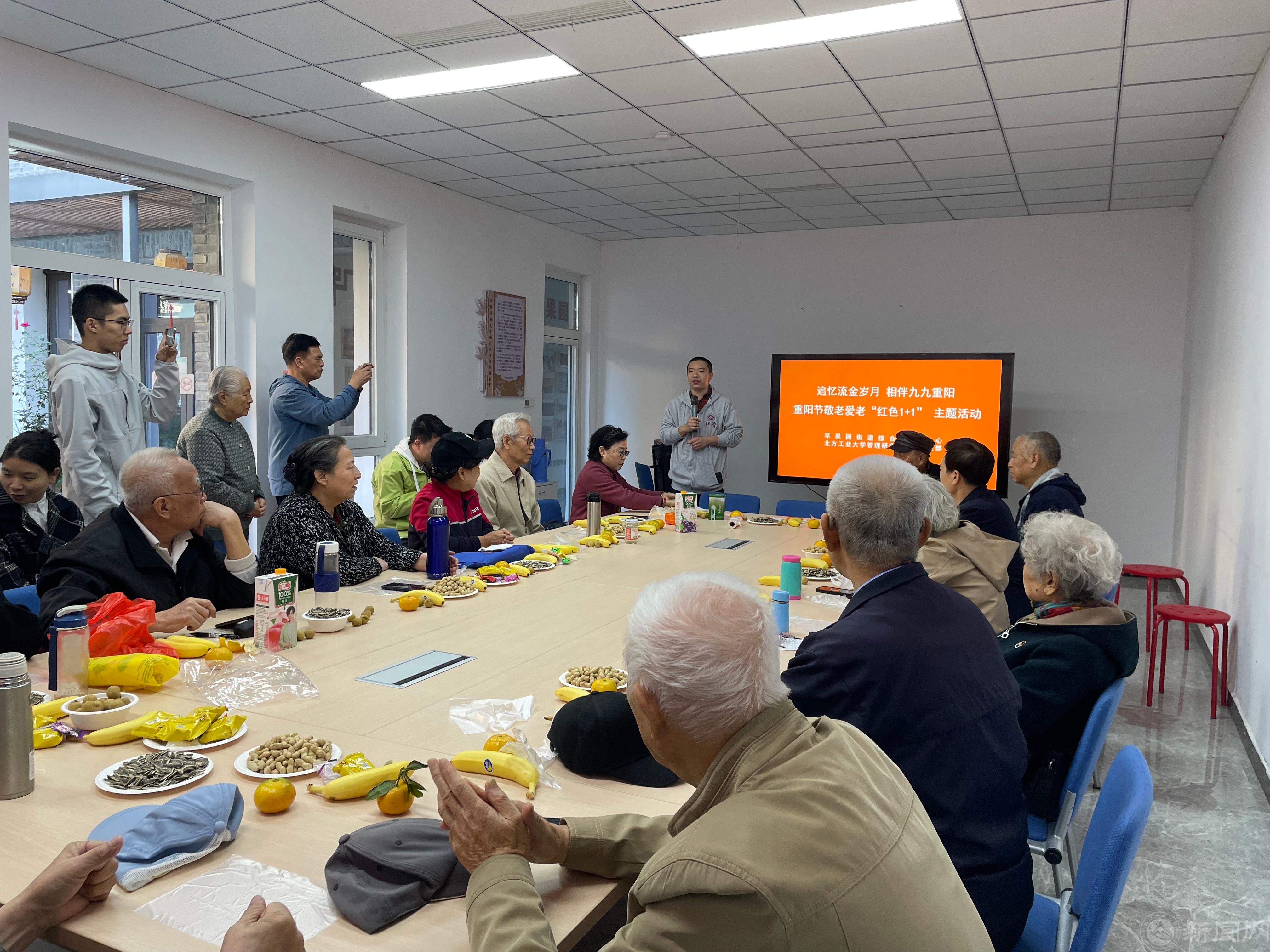 为深入学习贯彻习近平新时代中国特色社会主义思想,赓续红色血脉,弘扬爱老敬老精神,深化“红色1+1”合作共建,在重阳节即将到来之际,10月22日上午,经济管理学院管理研究生第一党支部联合苹果园二区第六党支部共同举办“传承红色基因 增添幸福底色”“红色1+1”主题活动。支部党员、积极分子代表20余人参加活动。