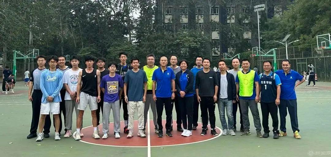 打一场篮球赛,述一段师生情。师生篮球友谊赛是信息学院的传统项目。学院张静、曲洪权、贾瑞明、李源、崔健、任进、张远、杨中国等教师组队,与2023级本科和研究生新生代表联队开展了以“青春正当时,共叙师生情”为主题的师生篮球友谊赛。学院党委书记王伟宾老师为比赛开球。随着一声哨响,各运动员立刻进入状态,打得十分欢乐,充分享受着运动带来的快乐。赛场上两支队伍你追我赶、互不相让,队员们你来我往,激烈交锋。熟练运球、传球、投篮,举手投足间展现了默契的配合和团结的力量,比分交替上升,僵持不下。两队不断运用战术,各队员配合默契、全力以赴,赛场精彩纷呈。双方打得有来有回,赛况非常激励。第二节一开始,学生队展开猛烈进攻,队员间默契合作,比分迅速上升。下半场比赛迅速进入白热化阶段,两支队伍都咬紧牙关,尽力抓住每个得分机会。临近比赛结束,教师队凭借精准的进球奋起直追,最终以42比33的比分战胜学生队获得师生篮球赛的胜利。“一场球赛展现出了学院师生团结、互帮互敬的良好氛围,彰显出信息学院师生擅长协作、勇于拼搏的精神风貌。”赛后,师生纷纷表示希望学院常态化开展师生联动活动,不断丰富师生校园文化生活。