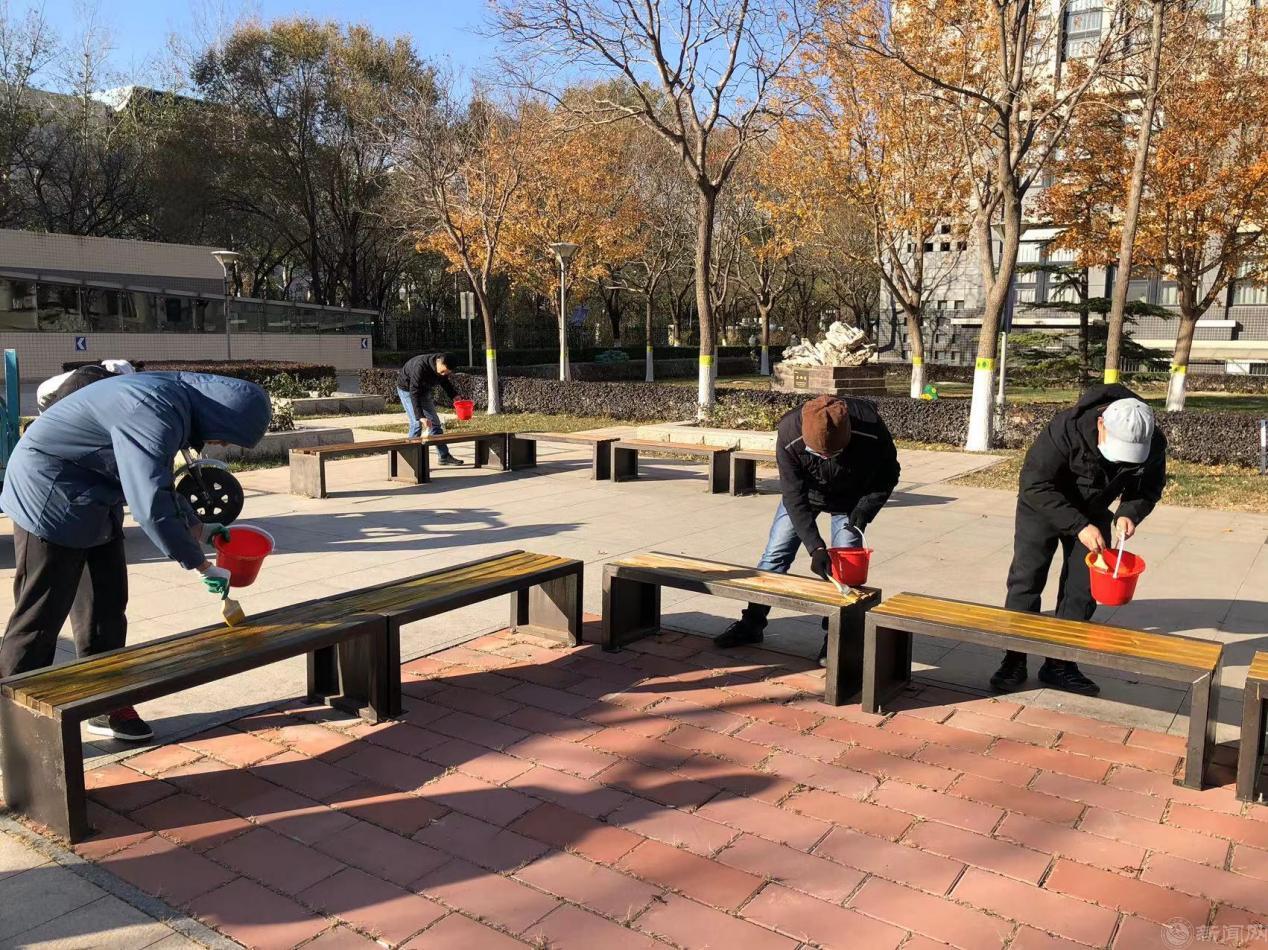 11月24日下午,服务中心组织20名学生在钟秀广场开展“匠”心粉刷座椅,扮靓校园的劳动教育课堂。绿化环卫党支部和动力修缮党支部联合党员骨干、积极分子共15名同志参加。
