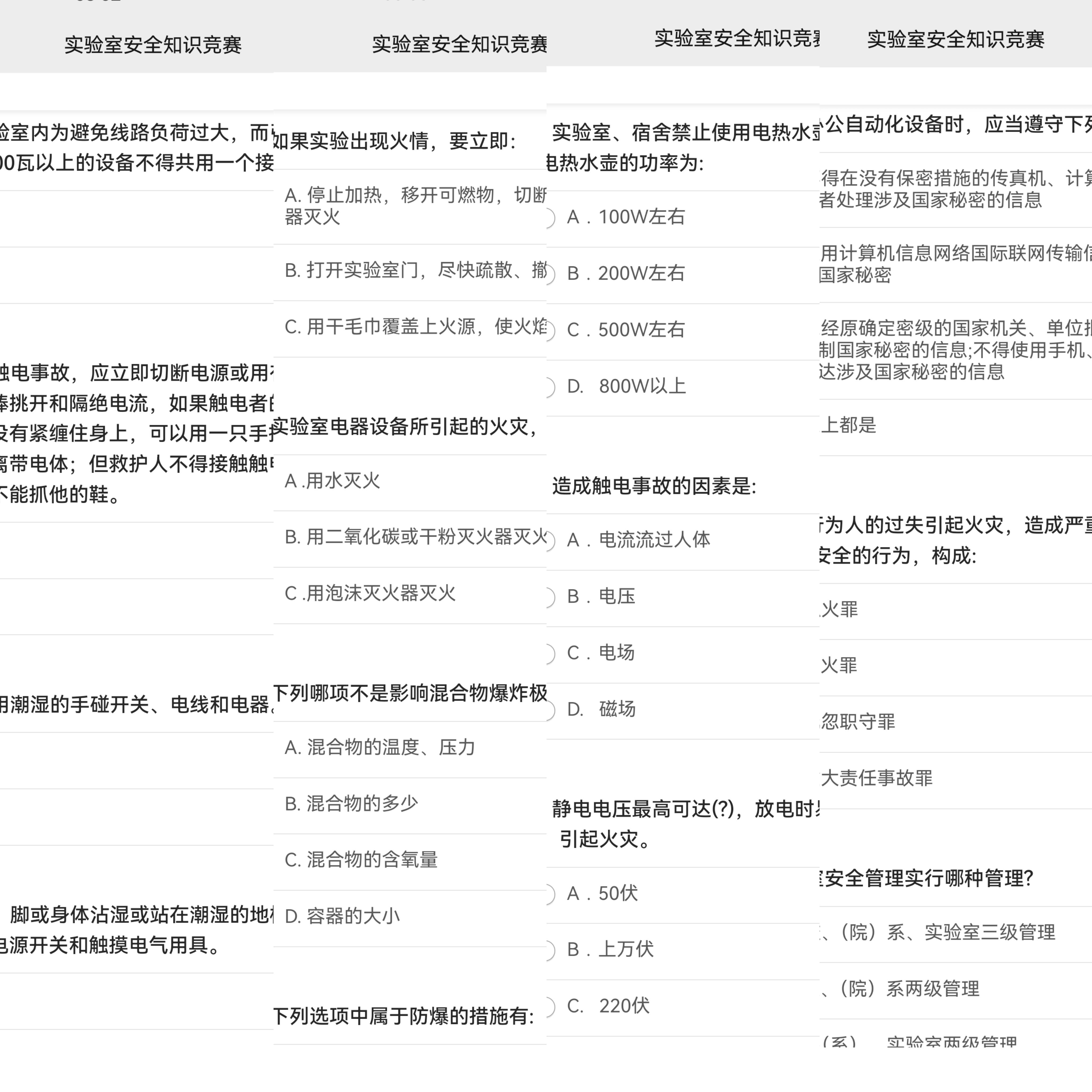 本次竞赛采取线上答题形式,竞赛题目包括实验室安全知识、消防器材使用和紧急情况处理等。竞赛结合学院实验室特点,如实验室内计算机、实验机器人、大型精密仪器等设备较多,题目多涉及防触电安全知识、电器设备起火的灭火方式以及涉密信息处理等方面的安全知识。通过参加竞赛,同学们纷纷表示要继续加强安全知识储备,把安全理念贯彻于日常行为中,不仅要谨记于心,更要笃之于行。活动过程中,学院全部研究生完成了实验室安全告知书和安全责任书的线上签订。