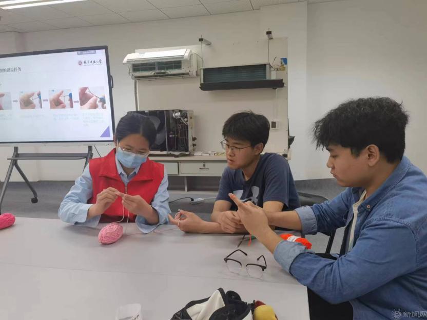 课堂上,主讲老师杨爽介绍了劳动教育的时代背景,以及beat365开展劳动教育课程的实践与探索。接着介绍了钩织艺术的起源、发展以及钩织文化的“前世今生”,以历史脉络与文化知识激发同学对钩织技艺的学习兴趣。指导老师现场演示了钩针编织步骤,手把手教学,让学生们掌握到从“线团”变“花朵”的编织技能。