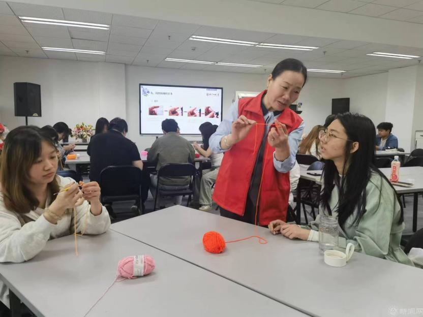 4月25日,服务中心开展了以 “妙手生花”,创意钩织为主题的艺术钩织公益劳动课,同学们在图书馆信息楼一层教室学习钩织玫瑰花的技能,掌握传统的手工钩织艺术知识。