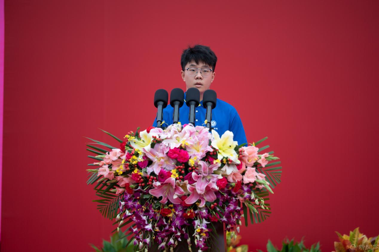 新生代表吴其雨昂从一周的军训感受中引发出了他的爱国强军之梦,并代表全体新生对学校和学院作出保证:“要坚定爱国信念,牢记初心使命;遵守校规校纪,为学校的发展贡献力量;做事精益求精、力争上游,为祖国争光添彩。”