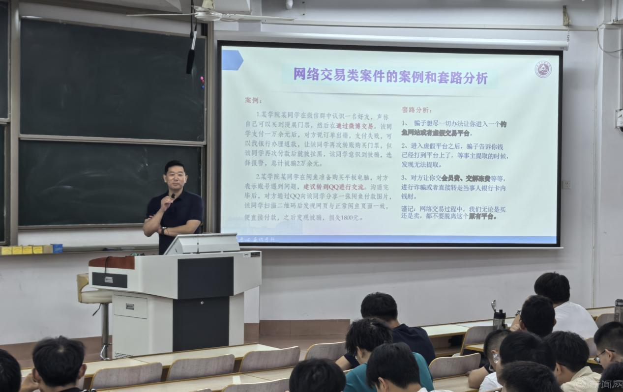 刘有宝老师结合自身经验和高校真实案例,向新生深入讲解了电信诈骗的定义、针对大学生的常见诈骗手法及防范措施,并详细剖析了诈骗心理和套路,警示大家摒弃侥幸心理,强化反诈意识。他强调,同学们需时刻警惕电信诈骗,熟悉诈骗手段,妥善保护个人信息,并充分利用国家反诈中心APP守护财产安全。最后,他提醒同学们一定要积极学习防诈知识,遵守校规校纪,远离快速致富骗局,拒绝刷单等违法活动。