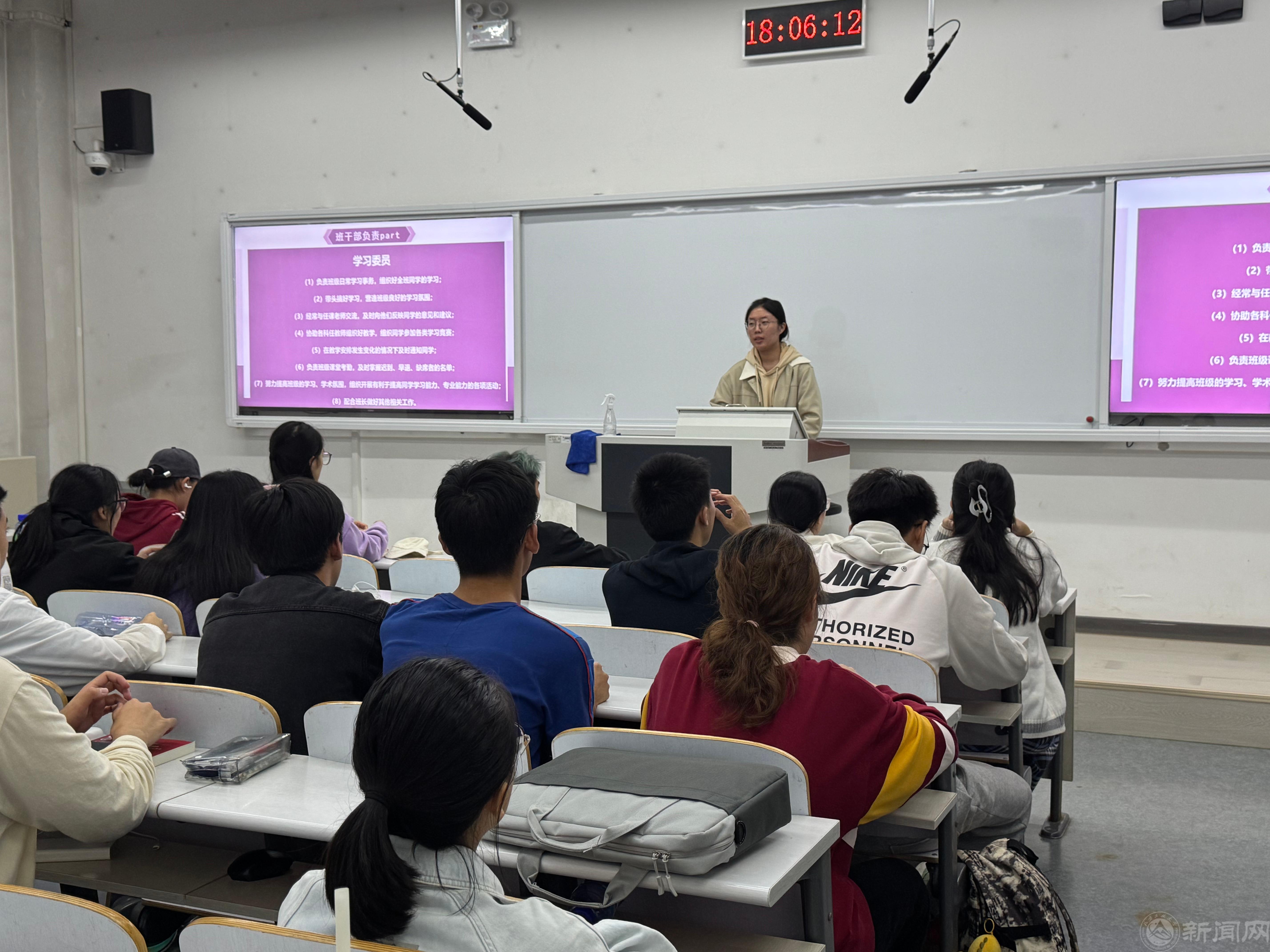 计类辅导员陈煦婷为新生班委讲解相应的班委职责。例如班长应负责班级全面工作,及时传达学校各项政策,配合班导师和辅导员开展班级工作。与各班委保持密切联系,协助任课老师维护教学纪律,调动同学们的积极性,及时向班导师、辅导员及学院汇报班级重大情况或同学们的重要问题。团支书应负责团支部工作,组织班级的政治理论学习和支部“推优”工作。建立班级青年志愿者、社会实践活动基地,开展各项志愿服务和社会实践活动。学习委员应负责班级日常学习事务,组织好全班同学的学习。带头搞好学习,营造班级良好的学习氛围,负责班级课堂考勤,及时掌握迟到、早退、缺席者的名单。明确班委职责,能够更好的提高班级工作效率。
