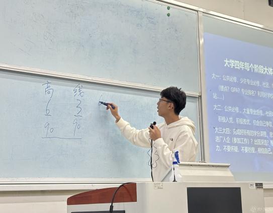 电类专业分享会上,保研至中国科学院信息工程研究所的何瑞同学向新生们分享了他的保研经历。详细介绍了保研的流程、准备策略以及面试技巧,鼓励同学们提前规划,积极准备。保研至东南大学的罗其榕同学从个人介绍、自身规划两方面出发,对新生的学习、科研竞赛等方面作了详细的建议。作为集体上岸宿舍的成员之一,考研至本校的马天禹同学分享了他的考研心得。为新生解答学分绩点的计算方式,并强调同学、宿舍关系相处融洽会为自己的大学生活增添不一样的精彩。留学至悉尼大学的杨明昊同学,从整体规划、语言准备、择地择校、其余准备四方面为有志于留学的同学提供了宝贵的参考。参军结束的张宸、宋骏同学通过训练照片介绍了他们的部队生活,并详细解读退役士兵复学入学、就业创业的政策。入职国企国创中心的郭骏豪同学就自己的大学经历,详细回答了三个问题:毕业后能从事哪些工作?如何培养与工作相关的能力?考研和就业如何选择?