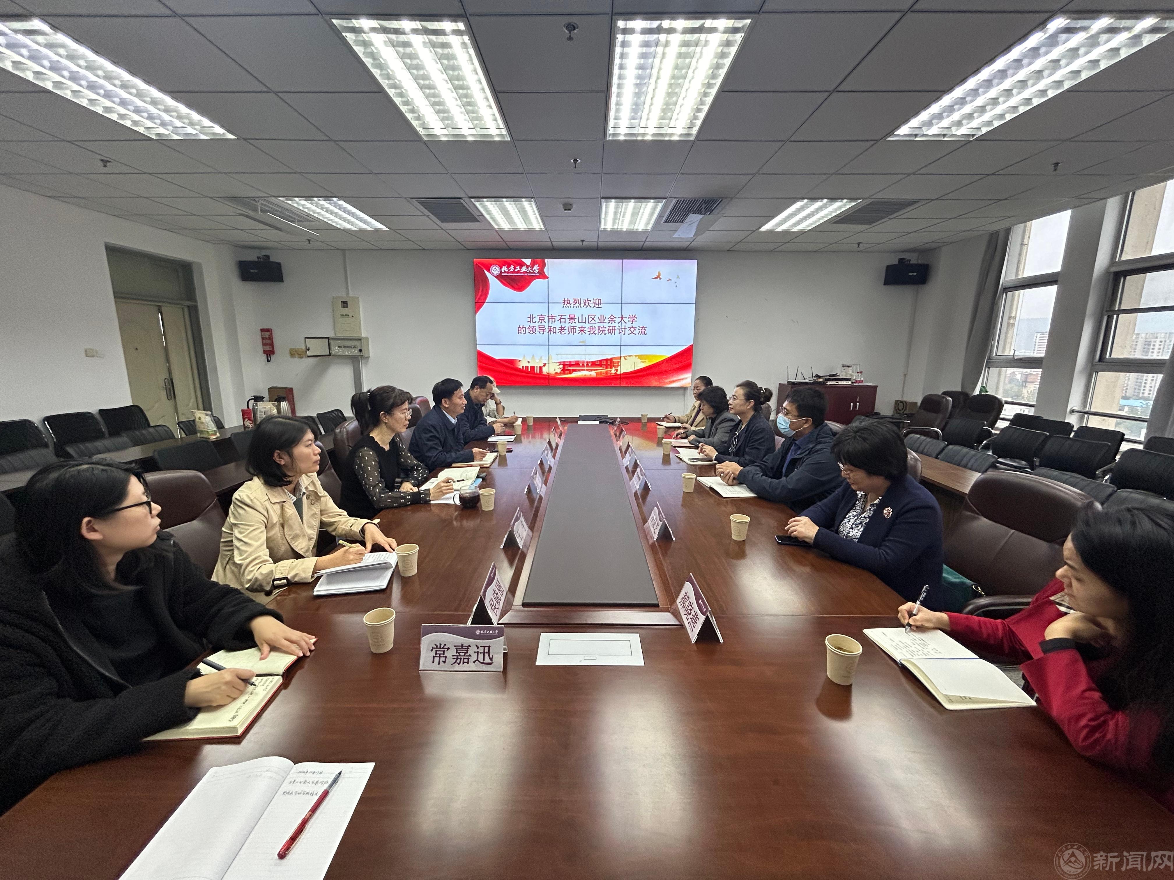 10月17日下午,石景山区业余大学副校长刘荣等一行六人到beat365继续教育学院调研交流,继续教育学院全体教职工参加了交流座谈会。