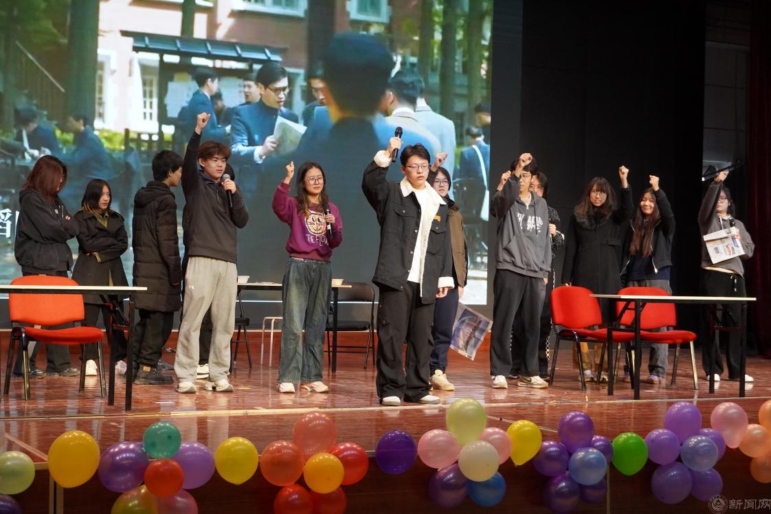 激扬青春,“剧”焦未来。主题晚会在一曲悠扬的萨克斯独奏中拉开帷幕,一场听觉和视觉的盛宴由此展开。整场主题晚会以青春为线索,以班级为单位,以身边小事为原型,从大学生的人际冲突、情绪调节、自我探索、入学适应、个人成长等角度出发,开展创作和演绎,步步展开,层层深入,呈现来自校园的青葱之音和动人故事。《觉醒民代》、《雷雨》等影视剧经典片段演绎,再现一个荡气回肠的觉醒年代,一次浩浩荡荡的觉醒浪潮,一群热血奋发的觉醒民众;《人工智能改变生活》、《智能与感恩》探讨人工智能如何与日常生活碰撞出火花,以及那些引人入胜的AI背后的故事;《反诈风云》、《青春无贷》通过演绎“办理健身卡”、“买卖游戏装备”、“校园贷”等多个校园诈骗手法,再现了电信诈骗的无孔不入,提醒同学们提高反诈意识;《我和高数的爱恨情仇》《甄嬛传》《童年歌曲串烧》《以树之名》等讲述大学学习生活中难以忘怀的点点滴滴,演绎青春从“缘起·相遇·共鸣”到“试炼·磨砺·启迪”再到“成长·收获·光芒”的心路历程,勇于行动,不断奋进。整场晚会精彩不断,高潮迭起,赢得台下阵阵掌声。饱含着同学铿锵自信和对未来的无限希望,绽放着青春与梦想的光芒。