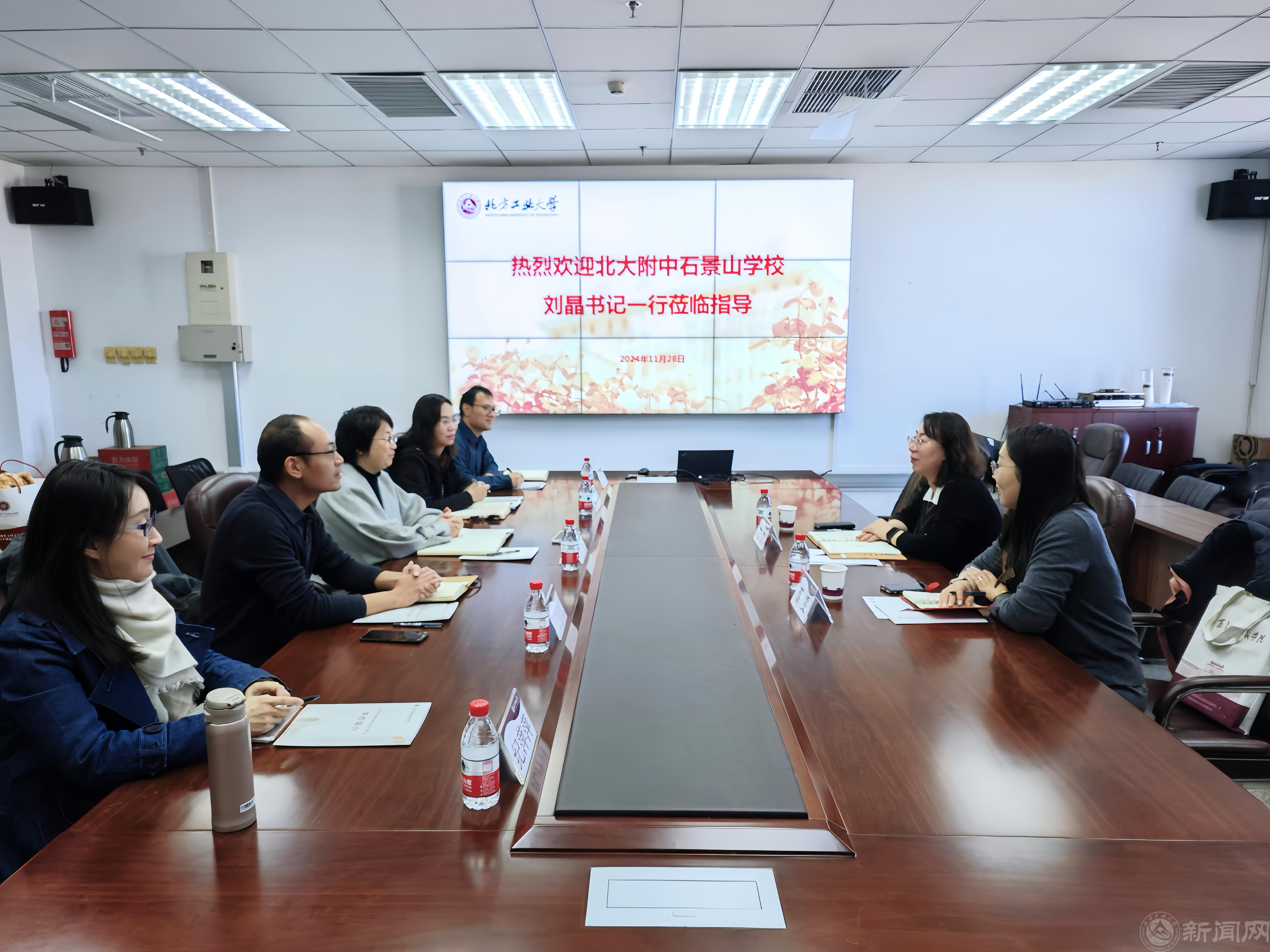 刘晶对学院的热情接待表示感谢,并介绍了北京大学附属中学石景山学校的办学由来、办学理念、办学成绩、办学特色等方面的工作;蔡雯重点介绍了学校在不同学段开展思政课建设的特色活动和具体举措。