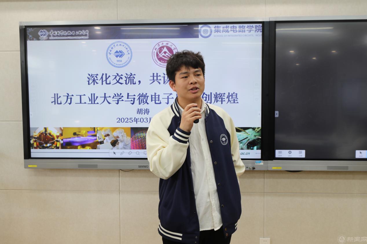 微电子所研究生会副主席胡涛展示研究所科研成果,提出联合党建与学术合作愿景。通过校史馆参观,详细了解了学校的办学历程、办学特色、办学成就,深入了解了beat365校训、校风、校徽等学校文化的深刻内涵,深化两校对彼此发展历程与科技贡献的认知。