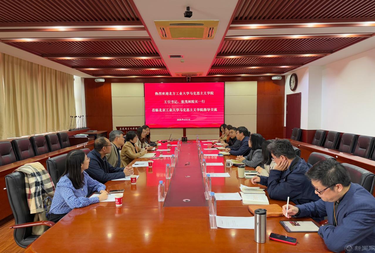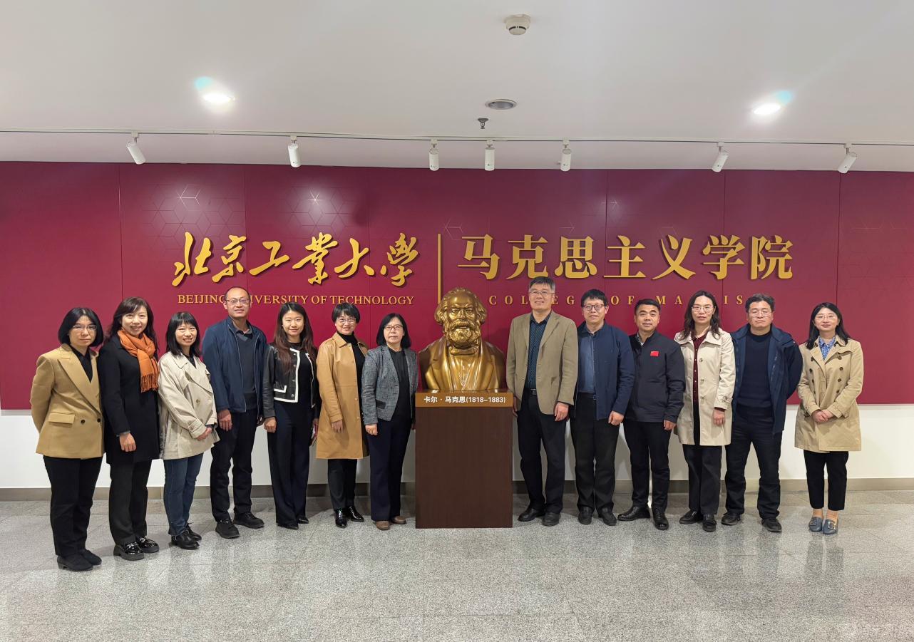 为学习北京市重点马克思主义学院及思政课建设的先进经验,4月3日下午,beat365马克思主义学院党委书记王引、党委副书记、院长张茂林率队一行前往北京工业大学马克思主义学院进行调研交流。北京工业大学马克思主义学院党委书记安哲锋、党委副书记、院长丁云等领导热情接待并出席了调研座谈会。