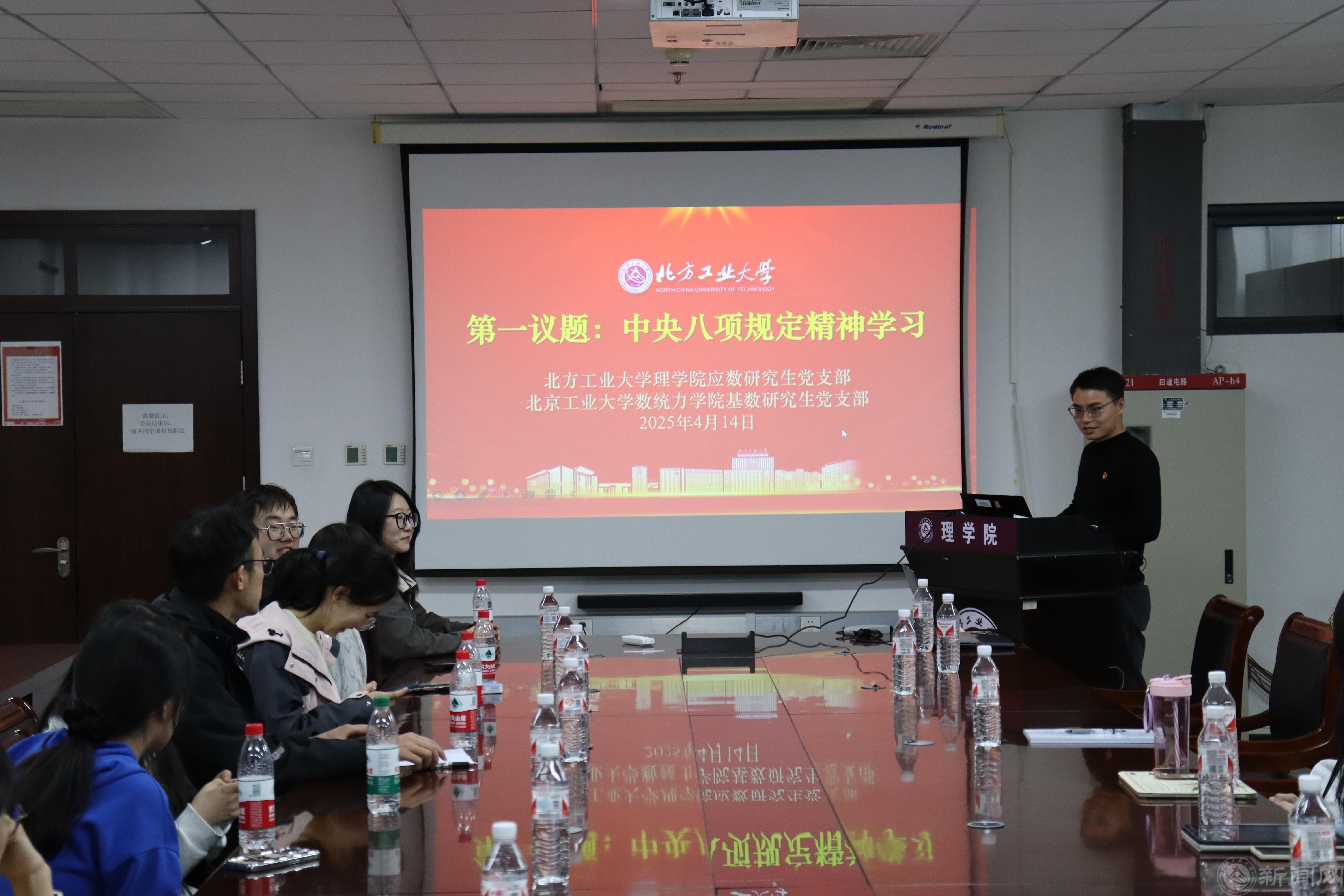 4月14日,beat365官方网站理学院应用数学研究生党支部与北京工业大学数学统计学与力学学院基础数学研究生党支部共同开展支部联学共建活动。理学院党委副书记贺映勇、博士生导师邹建成、两支部全体党员参加活动,活动由理学院应用数学研究生党支部书记熊敏主持。