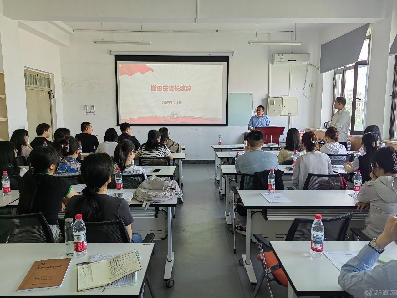 谢田法代表学院致欢迎辞。他指出,学院成立以来始终秉持“一融双高”理念,院党委切实将“四同三促”落在实处,始终高度重视学生党建工作。4月14日我院学子赴北方工大理学院成功开展党建交流活动,这次理学院相关同志回访,相信将进一步加深两院联系。希望通过此次共建,双方将进一步推动资源共享、优势互补,探索基础学科服务国家战略需求的新路径。
