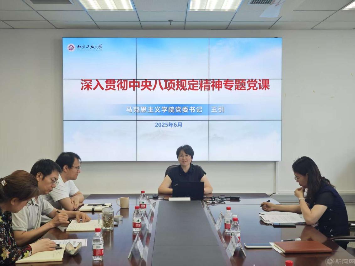 会上,学院党委书记王引讲授了深入贯彻中央八项规定精神学习教育专题党课。她从“清风溯源”“实践镜鉴”“洁行致远”三个方面展开,系统梳理了古田会议“三大纪律八项注意”到2012年中央八项规定的制度传承,强调作风建设的历史必然性,以延安整风运动“三大作风”阐释新时代从严治党的理论根基。她结合教育系统典型案例,剖析“四风”问题新表现,警示全体教师警惕“微腐败”风险。她立足学院实际,从教学、科研、师德提出具体要求,强调教案内容需与时俱进、学术活动应规范备案、师生交往要严守行为红线。