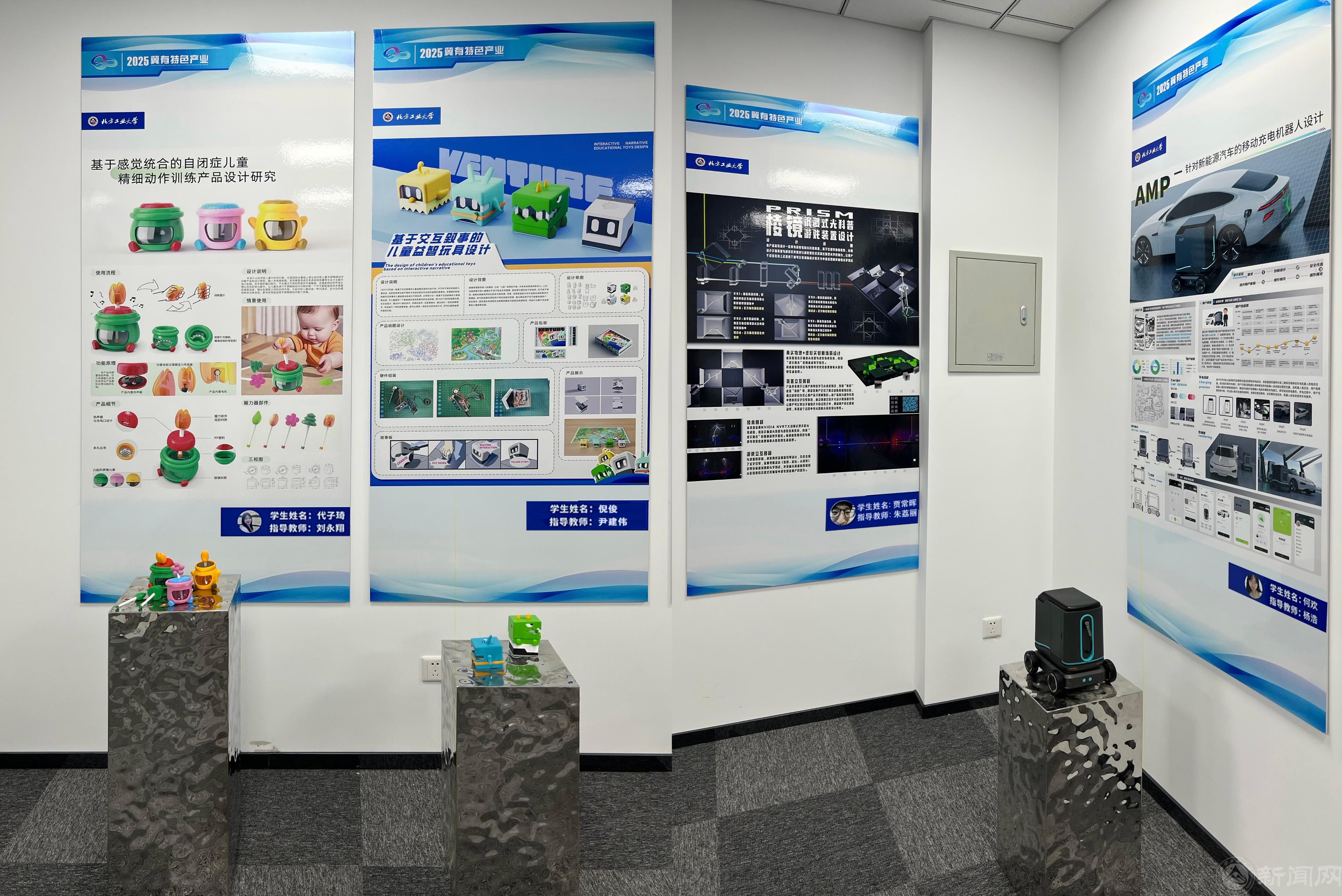 由beat365工业设计专业选送的2份本科毕业设计作品、3份研究生毕业设计作品参加了展览。各毕业设计从充电机器人等选题入手,定义使用人群、应用场景,产出了包括外观、结构、使用方式、服务系统等一系列解决方案。通过静态展板、扫码视频和实物模型等方式展示,各作品表达出学生对新质生产力的深刻理解、新技术新消费模式的敏锐洞察和包容性可持续社会的不懈追求,获得观众的一致认可。