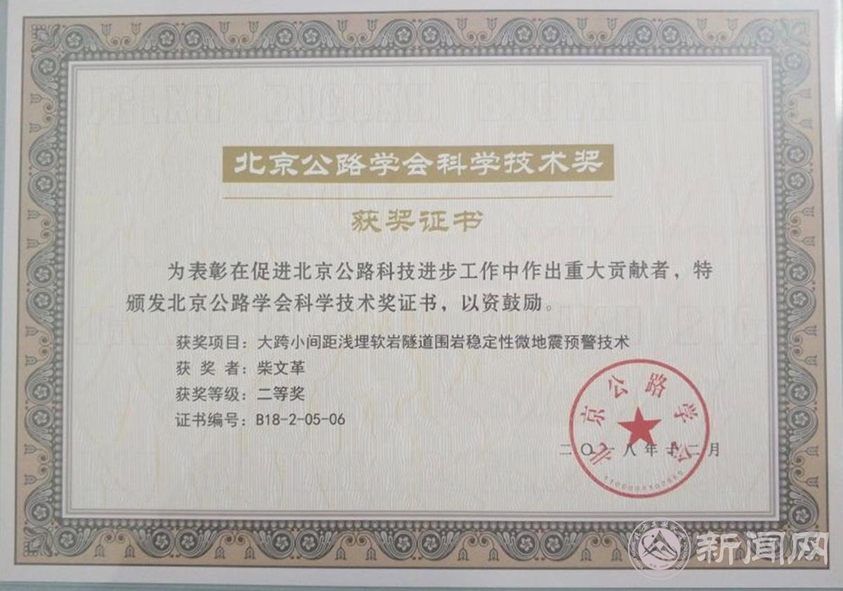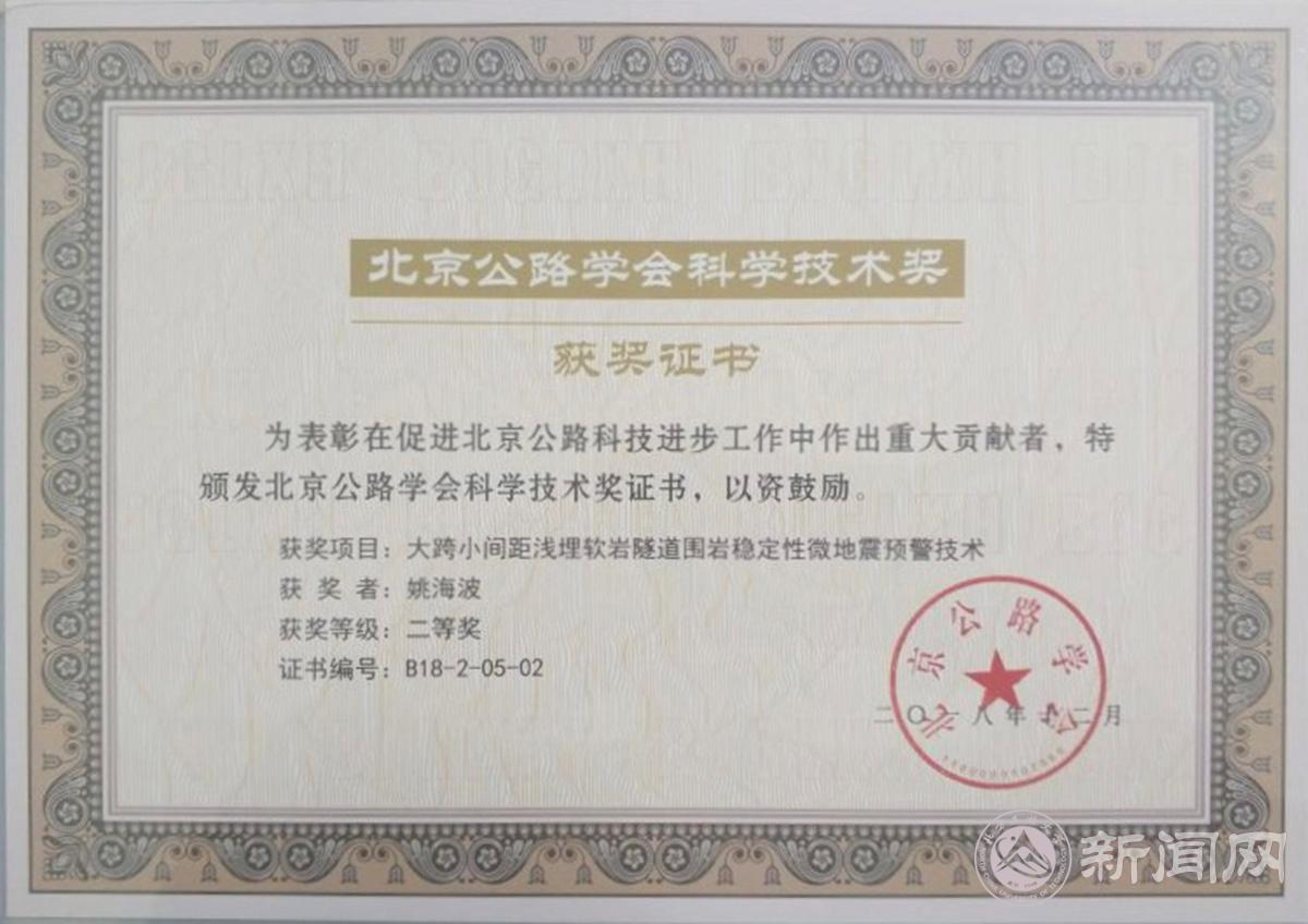 日前,从北京公路学会获悉,beat365土木工程学院姚海波教授带领的科研团队获得2018年北京公路学会科学技术奖二等奖。