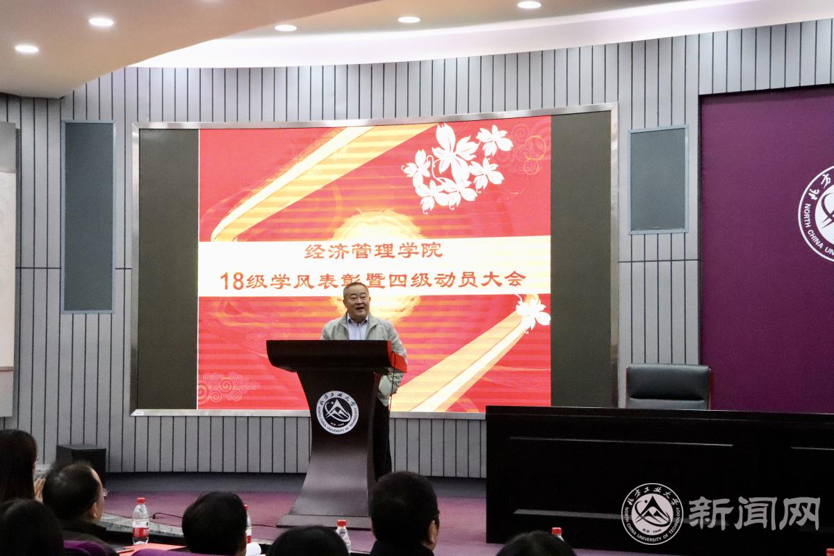 3月28日晚,经济管理学院在广学楼报告厅召开18级学风表彰暨四级动员大会。学院院长赵继新、学院党委书记王伟宾和系主任出席会议,2018级班导师、辅导员、18级全体学生300余人参加了此次会议。会议由学院党委副书记赵洁主持。