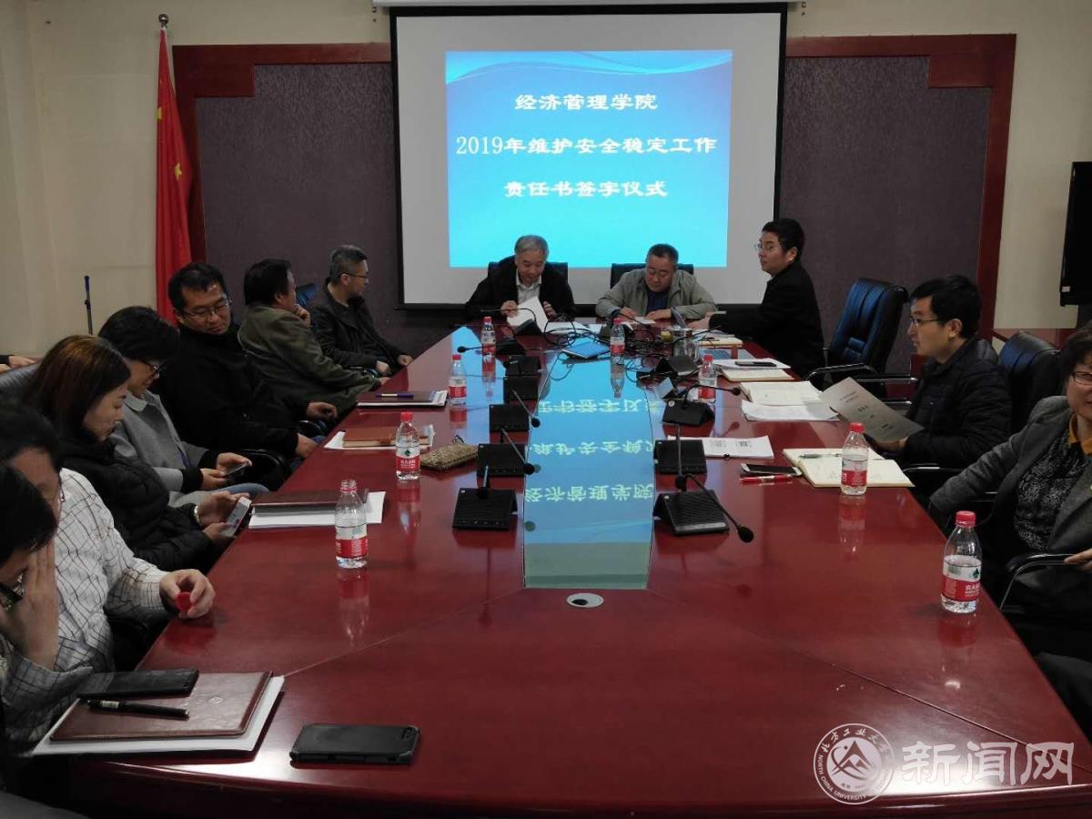 4月11日,经管学院在励学楼201会议室举行了安全稳定工作会议,部署2019年安全稳定工作。学院全体班子成员、责任教授、系(中心)主任出席会议,会议由党委书记王伟宾主持。