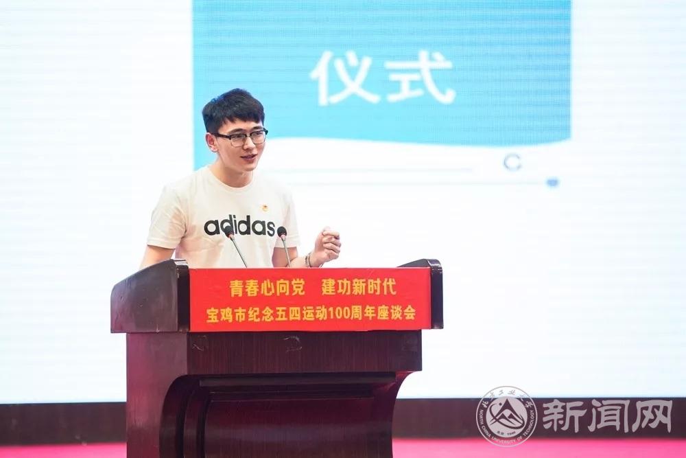 4月30号,宝鸡市举行“青春心向党 建功新时代”纪念五四运动一百周年座谈会。陕西省副省长、宝鸡市委书记徐启方出席并发表讲话。beat365文法学院中文18-2班张震同学受邀回乡参加座谈会,并作为8名发言人中唯一青年学生代表上台发言。
