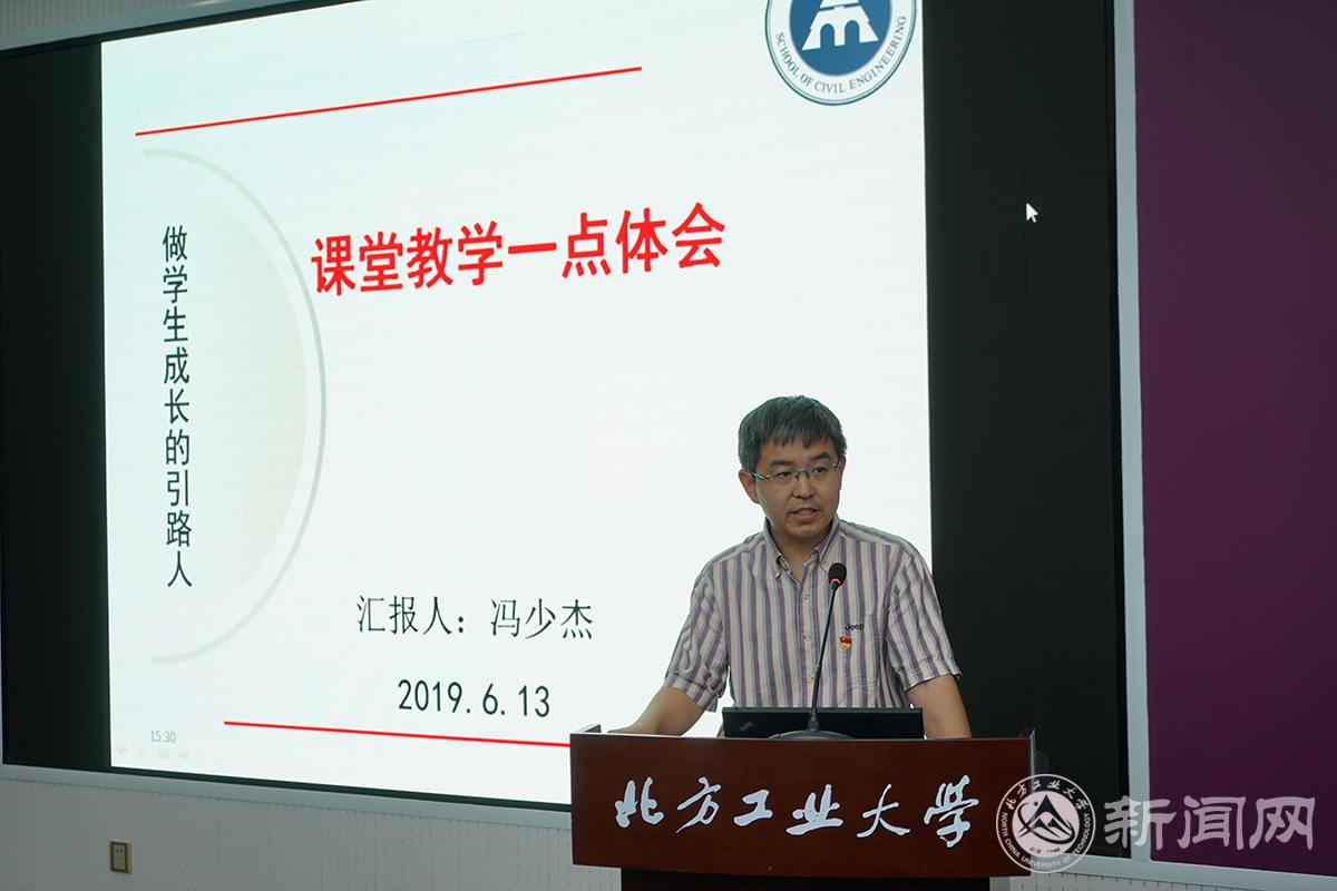 宋志飞副院长向大家展示了课堂教学管理规范的教师课程平时成绩评定的评价方式和过程记录,希望任课教师能够从细节入手不断提高课堂教学质量;土木工程系主任宋小软老师以《当前背景下的土木工程专业建设现状》为题,对智能建造新专业建设、土木工程专业认证(评估)准备工作以及虚拟仿真试验平台建设等进行了汇报;土木系葛燕锋老师以《土木毕业设计质量控制》为题,介绍了土木工程专业毕业设计从选题、开题,到中期检查、期末答辩,全过程的质量管理与控制方法;张少波老师以《践行工匠精神,用匠心上好每一堂课》为题,从课前准备,课上精神面貌、讲授技巧以及课堂管理等方面与大家分享了课堂教学的经验;李悦老师就如何帮助学生尽早树立大学学习目标、明确各学年具体任务,同时,如何做好家校沟通等谈了自己班导师工作的体会;陈伟娇老师以《尊重、关爱、教导--我的学生工作》为题分享了自己三届班导师工作的体会,用心对待每一位学生,真心帮助他们成长,并展示了所带班级学生获奖、考研等成绩;刘心男老师以《浅谈专业课程思政内容的选择和组织实施》为题,剖析了专业课程的思政内涵,课程思政的内容选择与组织实施,并结合自身在《建设法规》课程中的实践,分享了课程思政的体会;冯少杰与大家分享了自己的教学经验,包括课前精心设计、课上严格管理、课后持续关注,充分体现出作为教师教书育人和对待学生的严管厚爱;学院团委书记金磊以《年华共进,并肩前行》为题,回顾了学院学风建设、团学活动、关爱学生以及危机处理等方面的工作和收获。
