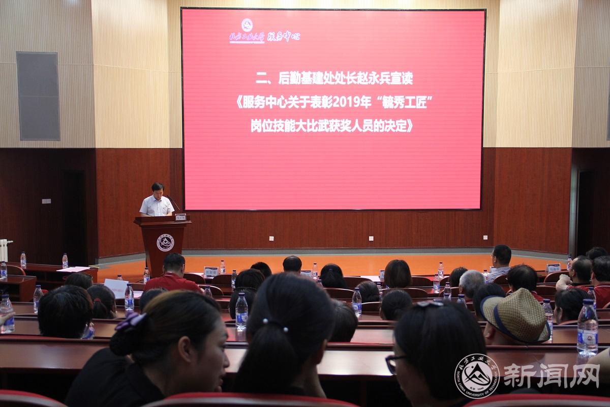 7月3日下午,服务中心在文化会堂召开了2019年“毓秀工匠”岗位技能大比武系列活动表彰会。后勤基建处、服务中心领导,部门正、副经理及班组长、服务中心部分职工等230余人参加了会议。会议由服务中心党委书记张加强主持。