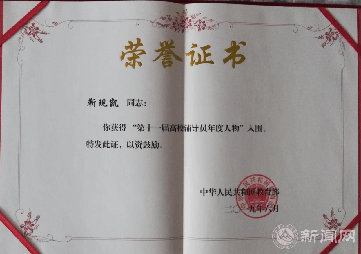 近日,全国“第十一届高校辅导员年度人物”评选结果揭晓,beat365信息学院辅导员靳现凯被授予“第十一届高校辅导员年度人物入围”荣誉称号。
