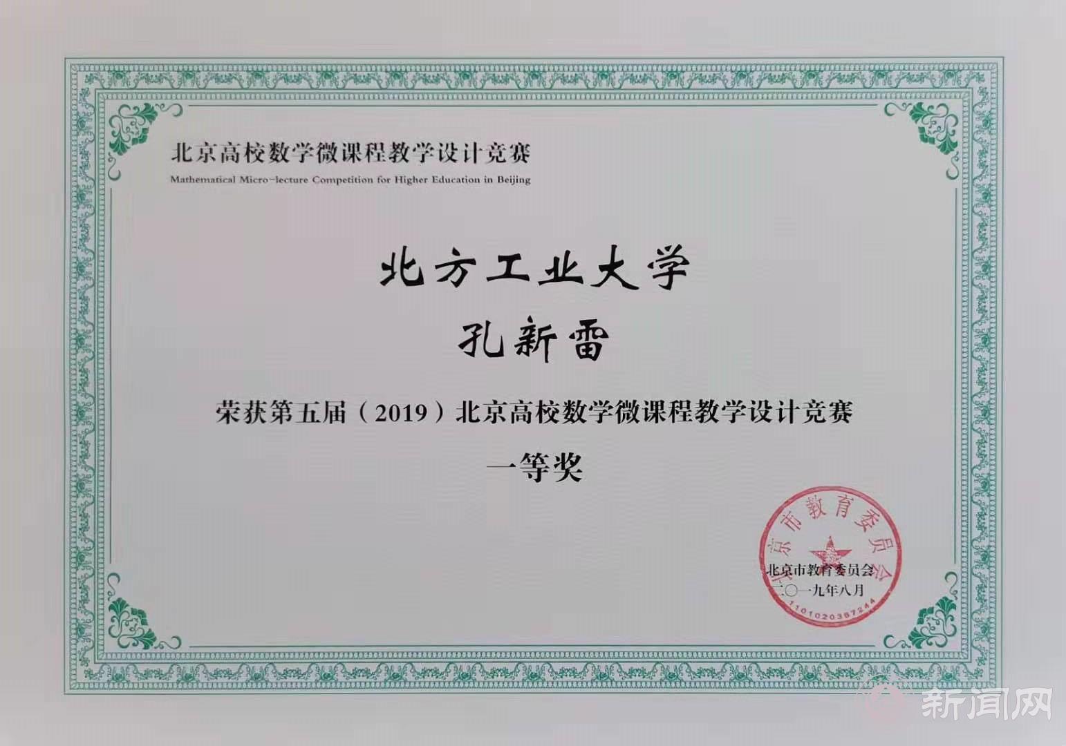 日前,第五届(2019)全国高校数学微课程教学设计竞赛北京赛区和华北赛区评选结果揭晓,beat365理学院数学系孔新雷老师先后获得北京赛区一等奖和华北赛区一等奖,并受邀参加在天津举行的颁奖会。