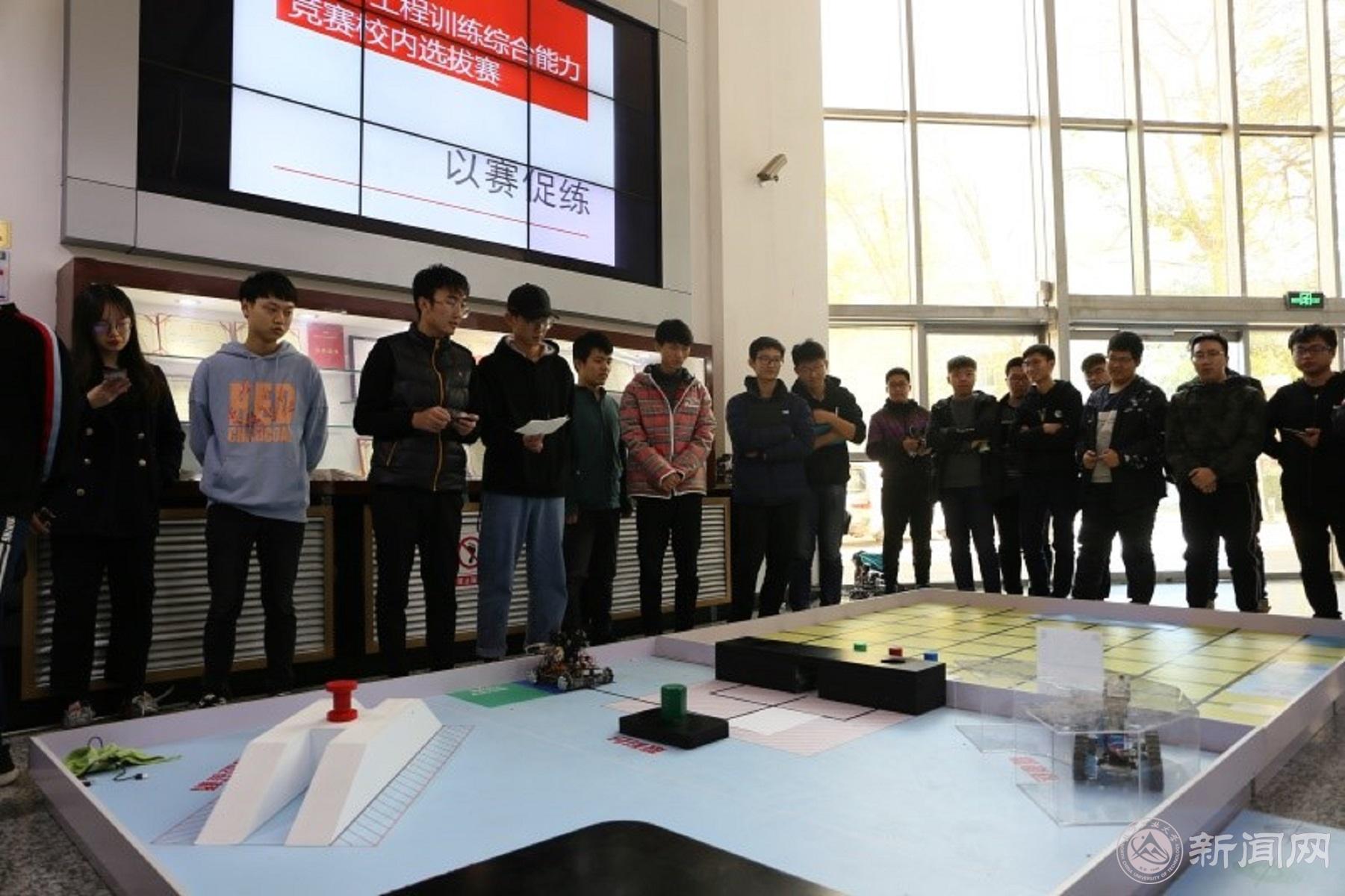 2019年11月13日“beat365官方网站第九届工程训练综合能力竞赛”暨“2019年北京市大学生工程训练综合能力校内选拔赛”在beat365官方网站工程训练中心实习楼顺利举行。全校共计12支队伍,48余名学生参加了选拔赛。经过激烈的比拼,2个“全地形搬运小车”项目组、3个“智能物流机器人”项目组、1个“工程文化知识竞赛”项目组等共6个项目脱颖而出,将代表学校满额参加2019年北京市大学生工程训练综合能力竞赛。
