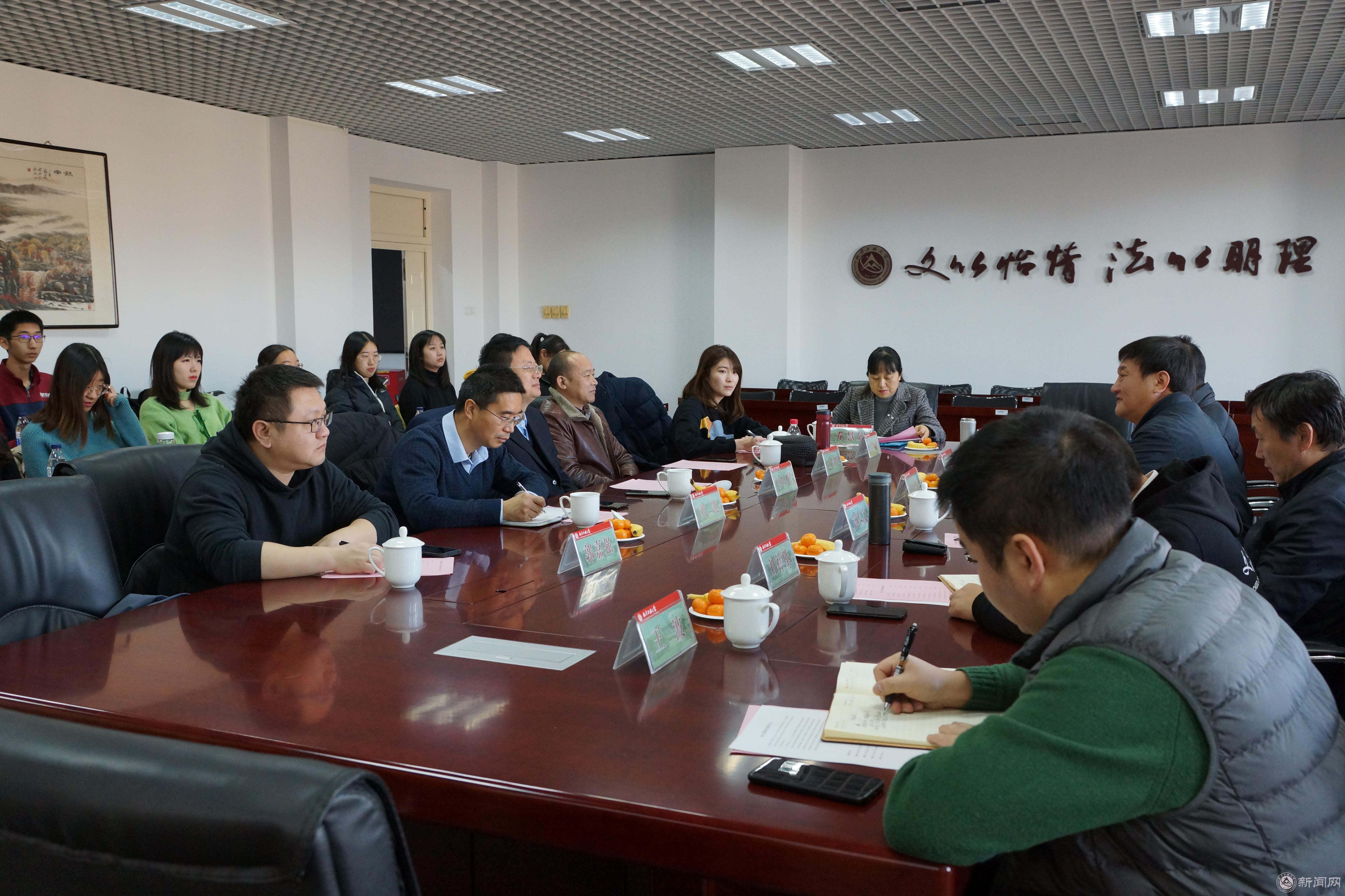 12月12日,中国政法大学国际法学院党委书记顾永强、教务处教学服务中心主任王景群等一行5人来访beat365,就beat365法学专业双培生培养等工作进行交流座谈。beat365教务处副处长魏金强,文法学院院长刘泽军、党委书记袁本文、党委副书记刘祥坠、全体辅导员、知识产权专业各班导师及法学专业17名双培生代表参加了座谈会。座谈会由文法学院副院长袁凤识主持。