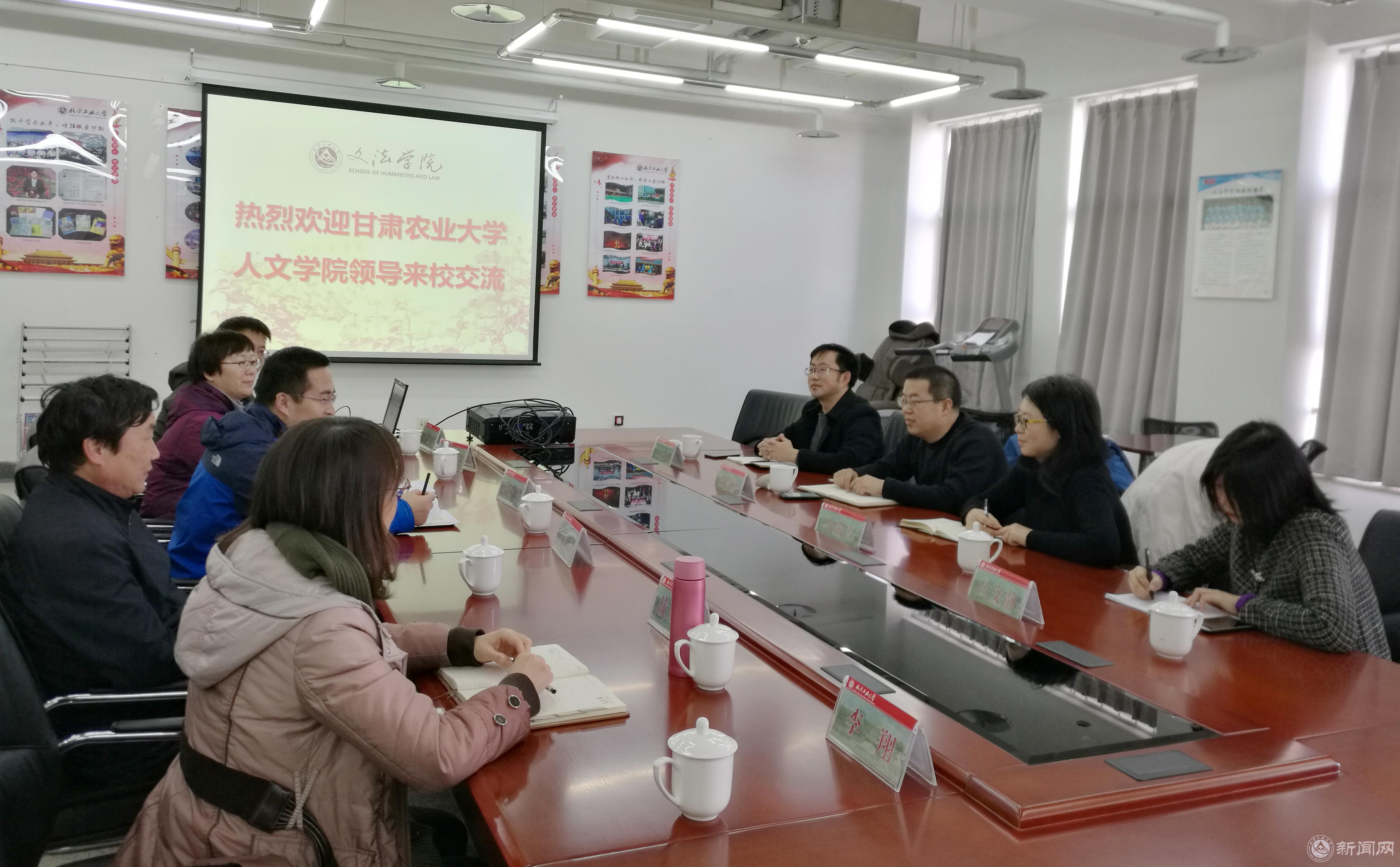 12月17日下午,甘肃农业大学人文学院英语系马瑞雪主任一行4人来beat365调研英语专业教学与大学英语教学改革工作。文法学院党委书记袁本文、副院长袁凤识、公共英语系主任高越、副主任战凤梅、英语系教师李翔及高黎老师参加了会谈。