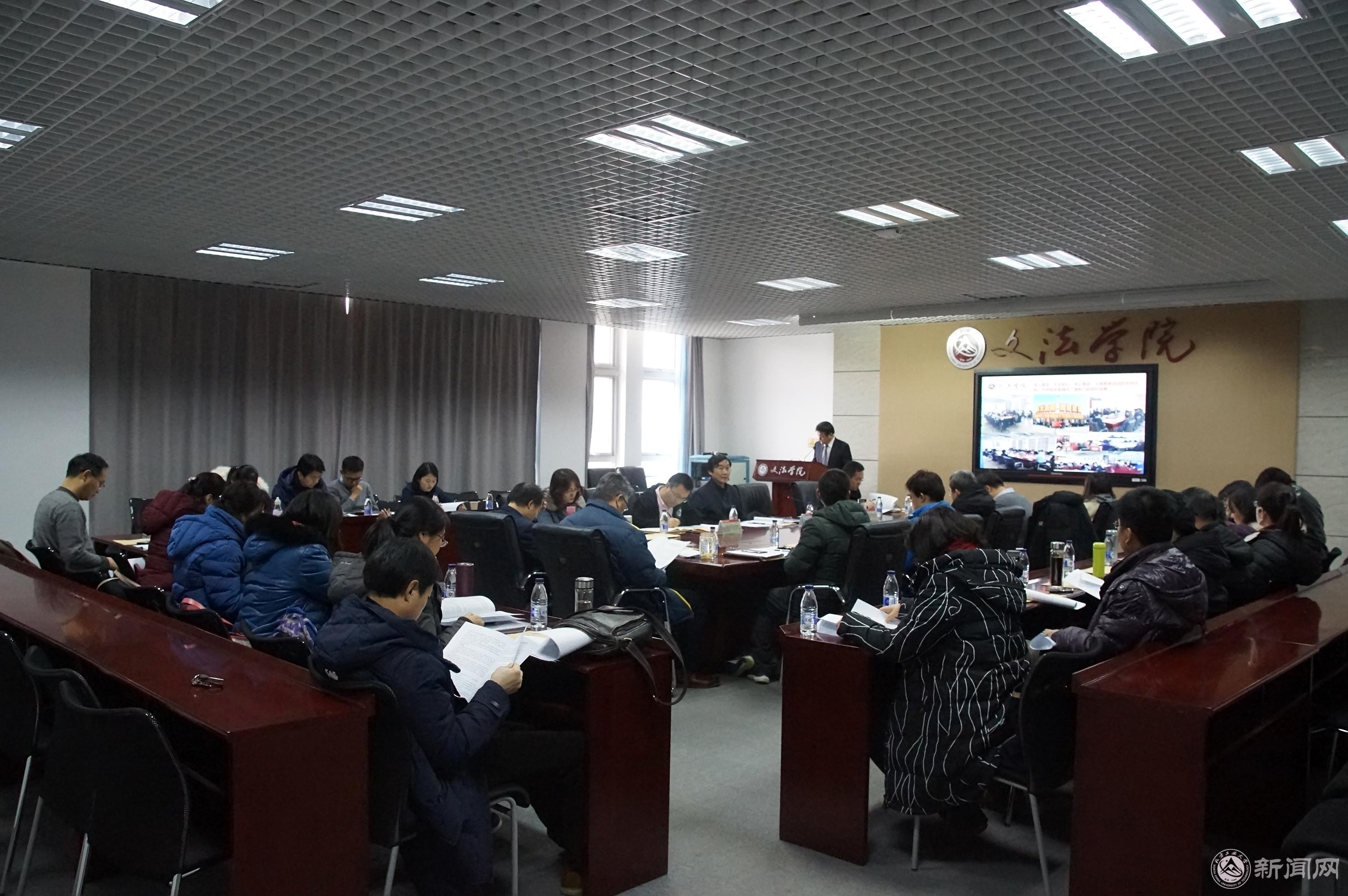 会上,刘泽军院长做了题为《不忘初心牢记使命,为全面提升文法学院建设与发展水平而努力》的工作报告,回顾了2019年学院主要工作、各方面取得的新成绩,指出了存在的问题和不足,并对2020年学院工作的总体要求及主要任务、学院重点推进工作进行了展望。报告指出:2019年,在学校党委和行政的领导下,文法学院全体师生员工,深入落实“不忘初心、牢记使命”主题教育的各项任务,勤勉努力,锐意进取,开拓创新,在人才培养、教育教学改革、学科建设、学术研究、社会服务等方面尽心尽力,取得了突出的工作成绩,为进一步全面完成学校“四大工程”“四大任务”以及“十三五”时期发展规划明确的目标任务,打下了坚实的基础。会议号召:希望2020年文法人“不忘初心 牢记使命”,继续以汗水浇灌收获,以实干笃定前行,只争朝夕,不负韶华,为全面提升文法学院建设与发展水平而努力!