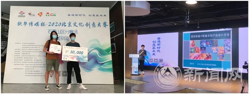 北京文化创意大赛石景山区分赛场自启动以来,面向全市征集优秀项目,征集领域含文化科技融合、数字创意、创意设计、非遗及IP开发、文化旅游、文化体育、广告传媒、文创类初创项目等多个领域,常规赛制共有150个项目报名参赛。组委会在对150个项目开展项目审核、选拔过后,共有50个项目进入复赛。8月6日、7日开展为期两天的复赛,经过严格的专家评审打分,24个优秀项目脱颖而出进入决赛。8月10日,beat365建筑与艺术学院艺术设计系2017级本科生夏欣宇、卢頔代表创业团队,赴首钢·侨梦苑参加了现场项目路演和颁奖仪式。