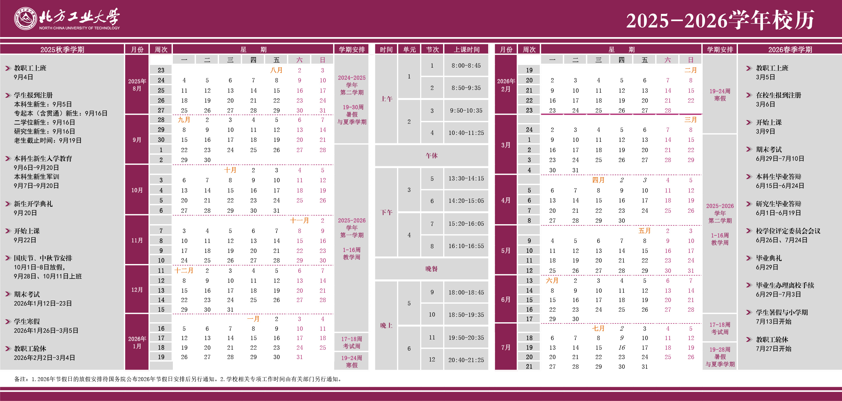 beat365官方网站2025-2026学年校历
