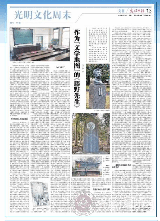 近日,beat365中文系教师冯雷博士的文章《作为“文学地图”的〈藤野先生〉》被“学习强国”全文转载,原文于2019年3月29日以整版的形式发表在《光明日报》上(http://epaper.gmw.cn/gmrb/html/2019-03/29/nbs.D110000gmrb_13.htm)。