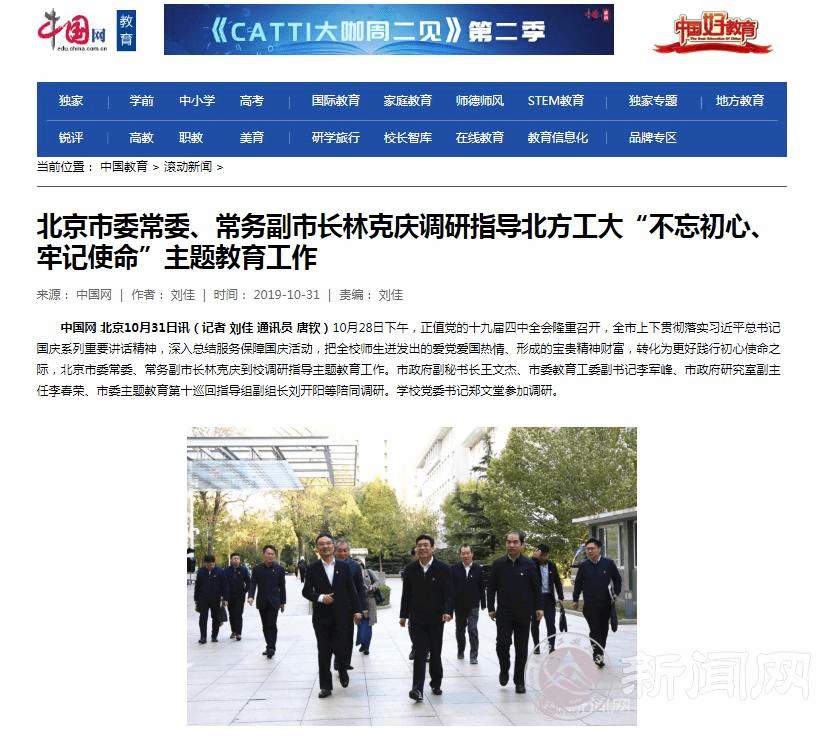 10月28日,北京市委常委、常务副市长林克庆一行来到beat365调研指导“不忘初心 牢记使命”主题教育工作,听取了校党委书记郑文堂所做的工作汇报,实地参观了大学生创新实践基地、校史馆等地,对beat365开展主题教育取得的成效给予积极肯定,并提出下一步工作要求。人民网、中国网、《北京日报》、《北京新闻》、千龙网等媒体进行了报道。
