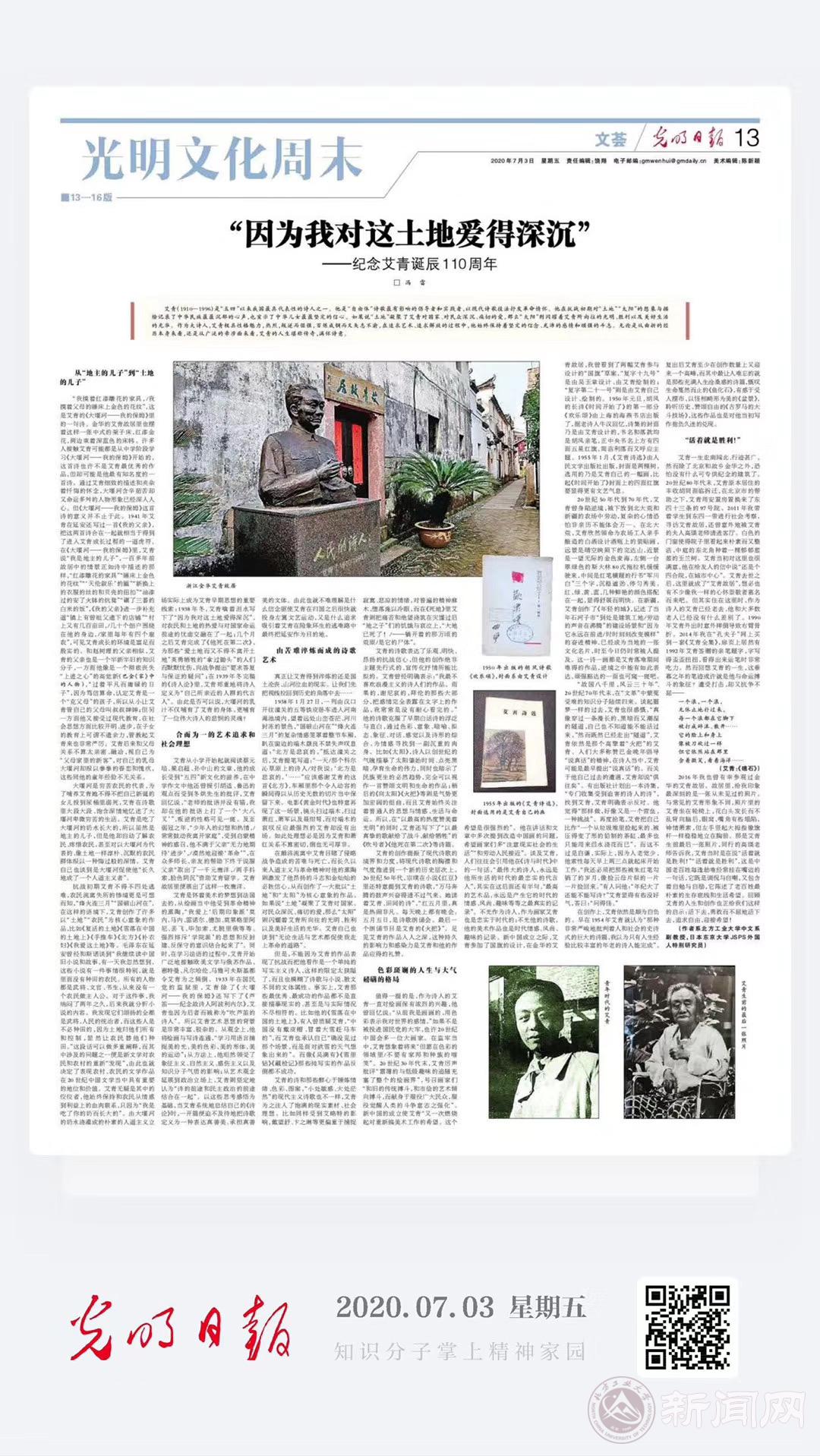 近日,beat365中文系冯雷副教授的文章《“因为我对这土地爱得深沉”——纪念艾青诞辰110周年》被“学习强国”转载。原文于2020年7月3日以整版的形式发表在《光明日报》上(https://epaper.gmw.cn/gmrb/html/2020-07/03/nbs.D110000gmrb_13.htm)。