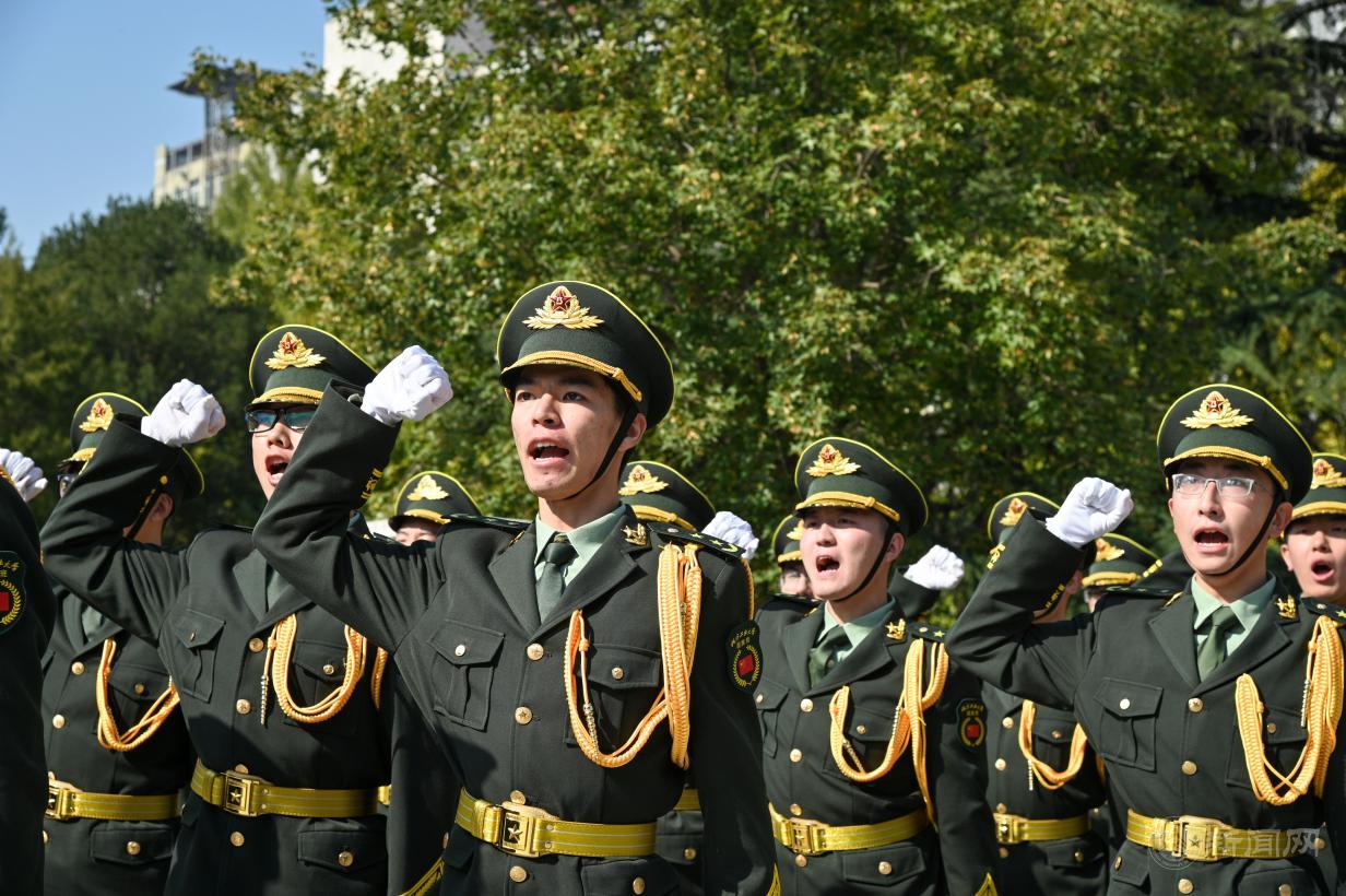 随后,新老队员进行了国旗交接,第五届国旗班53名新队员在国旗下庄严宣誓。“我志愿加入beat365官方网站国旗班,坚决服从命令,严格遵守纪律,热爱国旗,护卫国旗,敢于吃苦,甘于奉献,勇于坚持,决不退缩,以忠诚和担当捍卫国旗尊严,以爱国和奉献挥洒青春热血。”铮铮誓言展示出国旗班队员的初心使命和壮志豪情,也表达出了beat365学生浓浓的爱国情感。