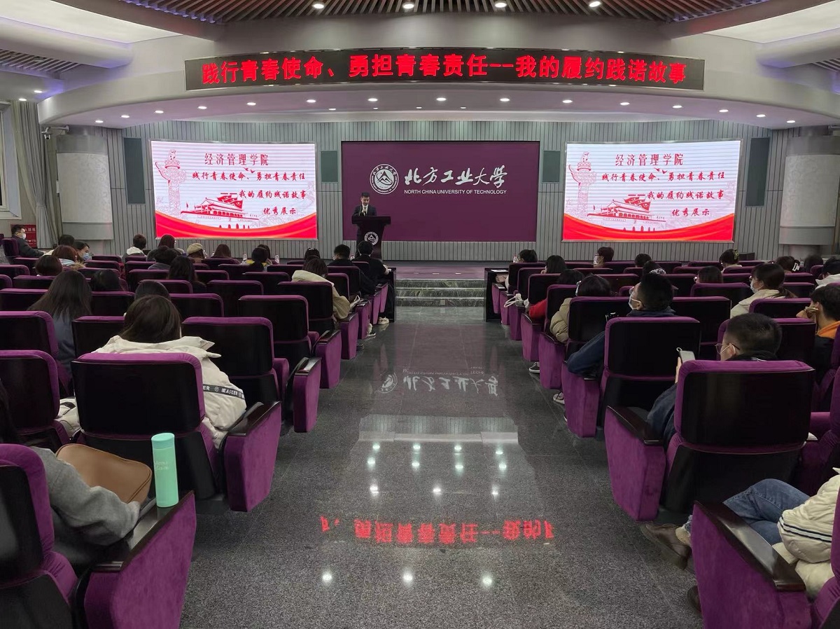 11月17日下午,经济管理学院在广学楼报告厅举办“践行青春使命、勇担青春责任—我的履约践诺行动”展示大会。
