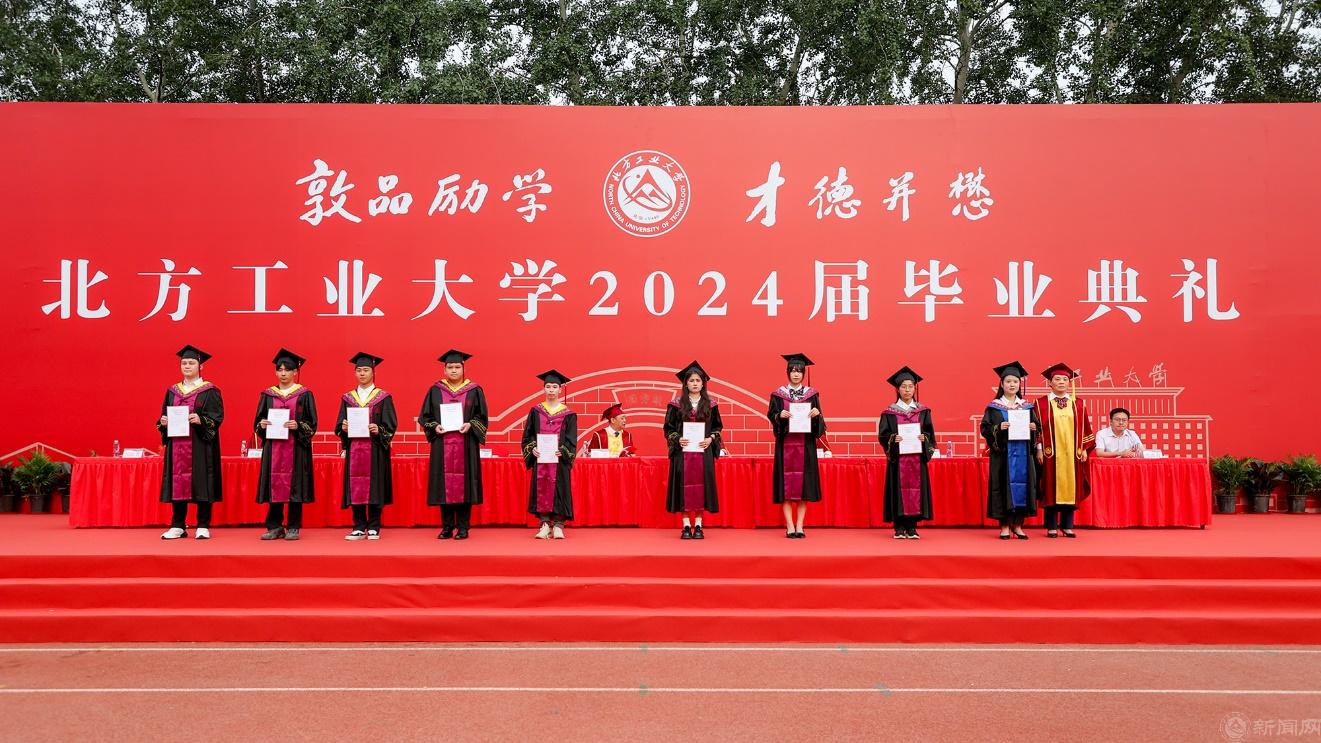党委副书记、校长张立峰致辞。他祝贺2024届学生顺利完成学业,并现场做一次特殊的“点名”,向典礼当天生日的12名同学送上真挚的祝福。他表示,北方工大是同学们筑梦远航的起点、收获同学情谊的圣地,“青春工大”将成为大家人生中意义非凡的难忘经历。张立峰与师生共同回顾四年难忘的校园生活,赞扬同学们面对疫情肆虐时的挺膺担当、完成学业时的刻苦钻研、开展科学研究时的拼搏进取、投身“四大节”全面成长成才的激情绽放、面对挫折困难时的迎难而上,他动情地点出在各个领域表现优异的学生名字,将赞美和掌声送给他们,让同学们带着骄傲和荣耀告别母校。