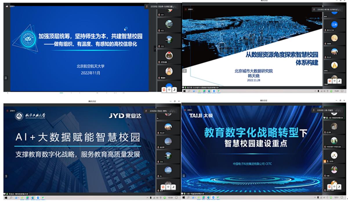 与会专家分别从《加强顶层统筹,坚持师生为本,共建智慧校园》《从数据资源角度探索智慧校园体系构建》《AI+大数据赋能智慧校园》《教育数字化战略转型下智慧校园建设重点》等多个维度对beat365智慧校园建设的总体规划、基础设施、数据底座、核心技术、典型应用等关键问题进行了深入研讨。