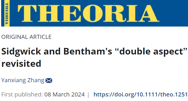 国际人文顶尖期刊Theoria(《沉思》)于2024年3月8日在线刊发了文法学院张延祥副教授独立撰写的长篇研究论文:SidgwickandBentham’s‘DoubleAspect’ofUtilitarianismRevisited(论边沁《宪法典》的人性论基础)。Theoria创刊于1935年,一直是众多世界著名思想家研究成果的刊发平台,在人文研究领域享有崇高声誉,被国际人文研究领域的各个权威期刊目录收录,其中包括两大人文权威期刊索引目录A&HCI(艺术与人文索引目录)和S...