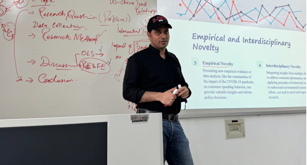 4月26日下午,经济管理学院励学讲堂第十六期在励学楼517举行,浙江师范大学教授AdnanKhurshid应邀做主题为“批判性思维和社会科学研究”的学术讲座,校党委宣传部副部长王昕宇副教授主持学术报告。本次讲座中,Khurshid教授按照论文写作的主要流程,结合自己发表的顶级期刊论文,向同学们细致讲解了如何撰写一篇高质量的经济研究论文。他指出,首先要选择一个研究主题,在选择主题时要综合考虑自己的兴趣、目前的新兴趋势以及已...