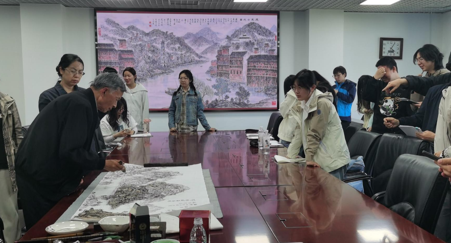 4月24日下午,中国当代著名山水画家贺伟国先生做客春霖美育讲堂,在瀚学楼710为师生带来题为《美育浸润诗画一体——中国山水画艺术现场》的讲座,并当场捐赠画作。文法学院院长刘泽军、党委书记袁凤识、党委副书记邝洪波出席讲座。讲座由文法学院中文系王德岩副教授主持,40余名师生聆听、参与了讲座。贺伟国先生的讲座以其亲身探访并创作的“凤凰古城”诗、画开场。从烟雨凤凰城到紫禁风云,再至尼亚加拉飞瀑,通过现场展示《...