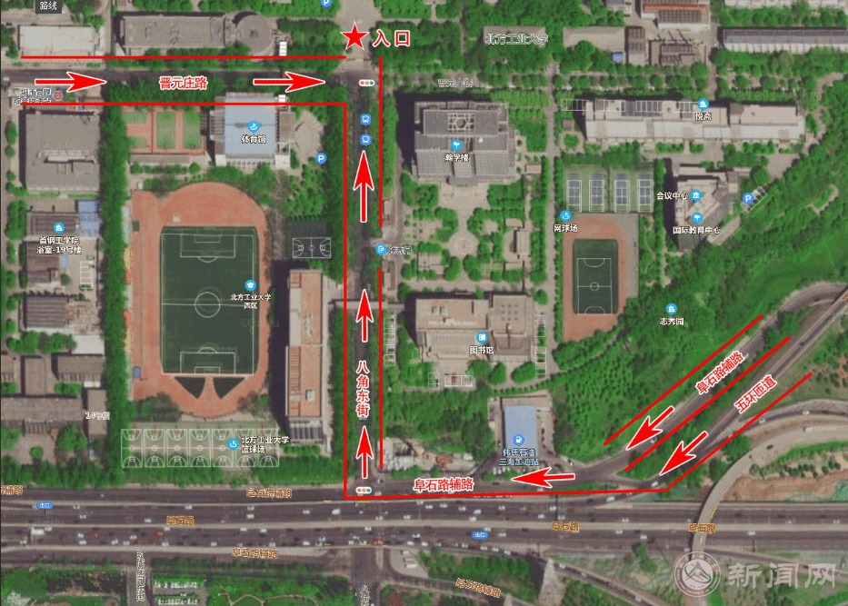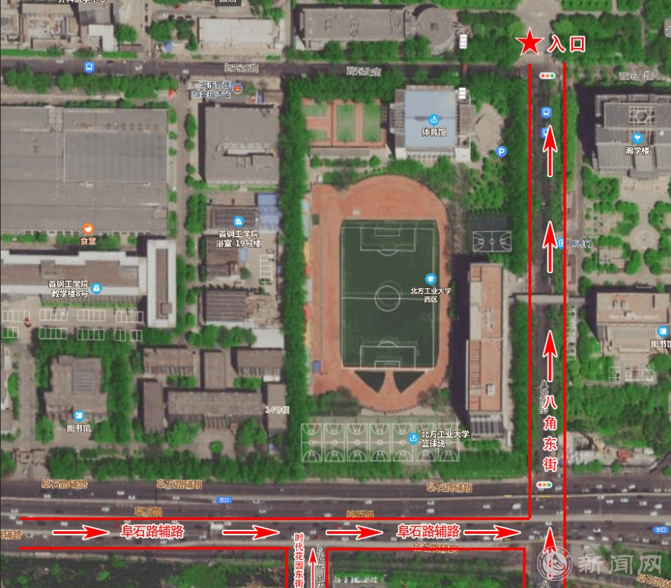 1、高德地图导航、百度地图导航:beat365官方网站南门(石景山区晋元庄路与八角东街交叉口北20米)。进车位置如下图: